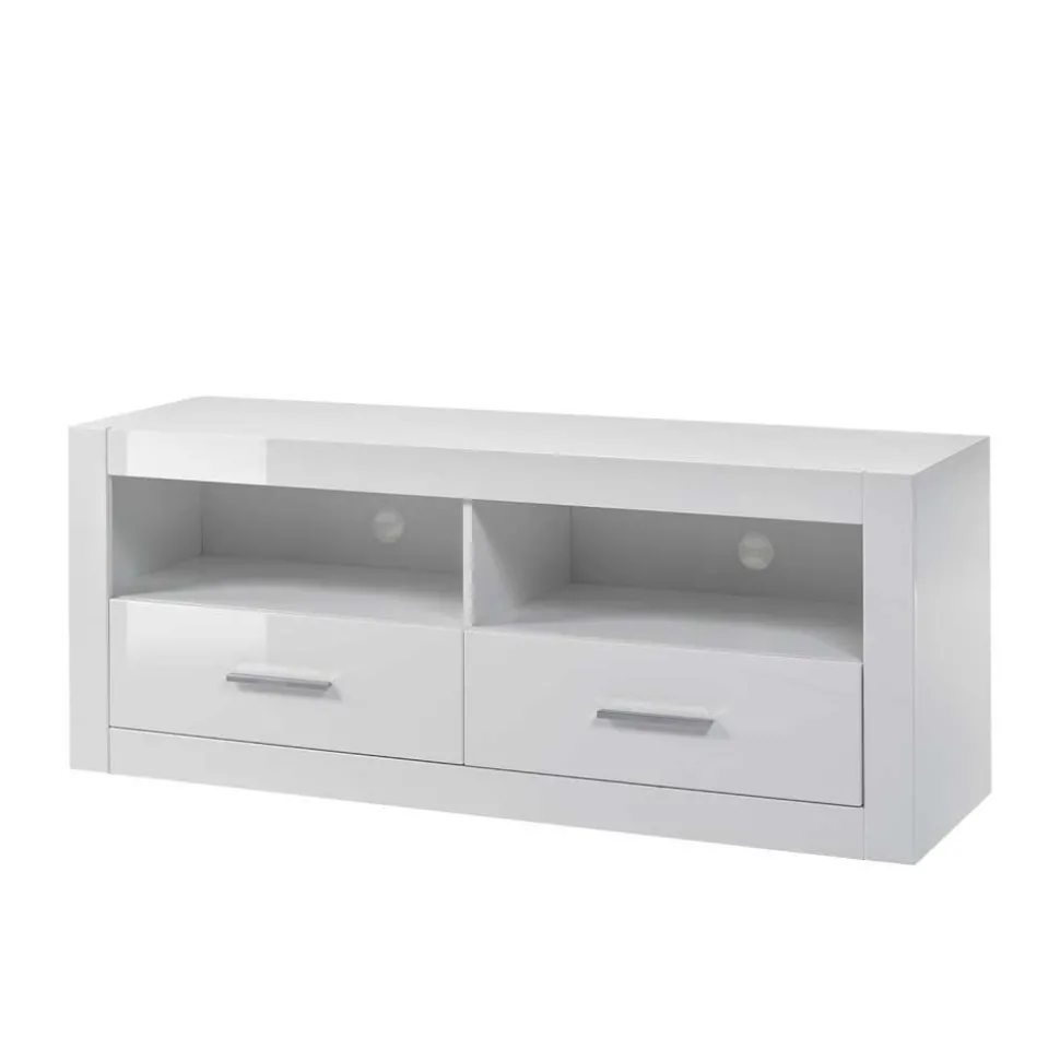 Das 150x61x45 cm große TV-Board ist nicht nur optisch ein Blickfang – es überzeugt mit praktischer Funktionalität. Geeignet für Fernseher bis ca. 65 Zoll, bietet die Oberplatte mit einer Tragkraft von bis zu 30 kg ausreichend Stabilität. Zwei geräumige Schubladen mit eleganten Metallgriffen fassen jeweils bis zu 5 kg. In den beiden offenen Gerätefächern (je ca. 72x27x40 cm) lassen sich Receiver oder Konsolen ideal platzieren. Dank integrierter Kabelführungen bleibt alles aufgeräumt und organisiert. Und wenn Sie einmal umdekorieren möchten: Laufrollen ermöglichen ein bequemes Verschieben des Boards – Flexibilität, wie man sie sich im Alltag wünscht. Die Fachböden sind je bis 10 kg belastbar.