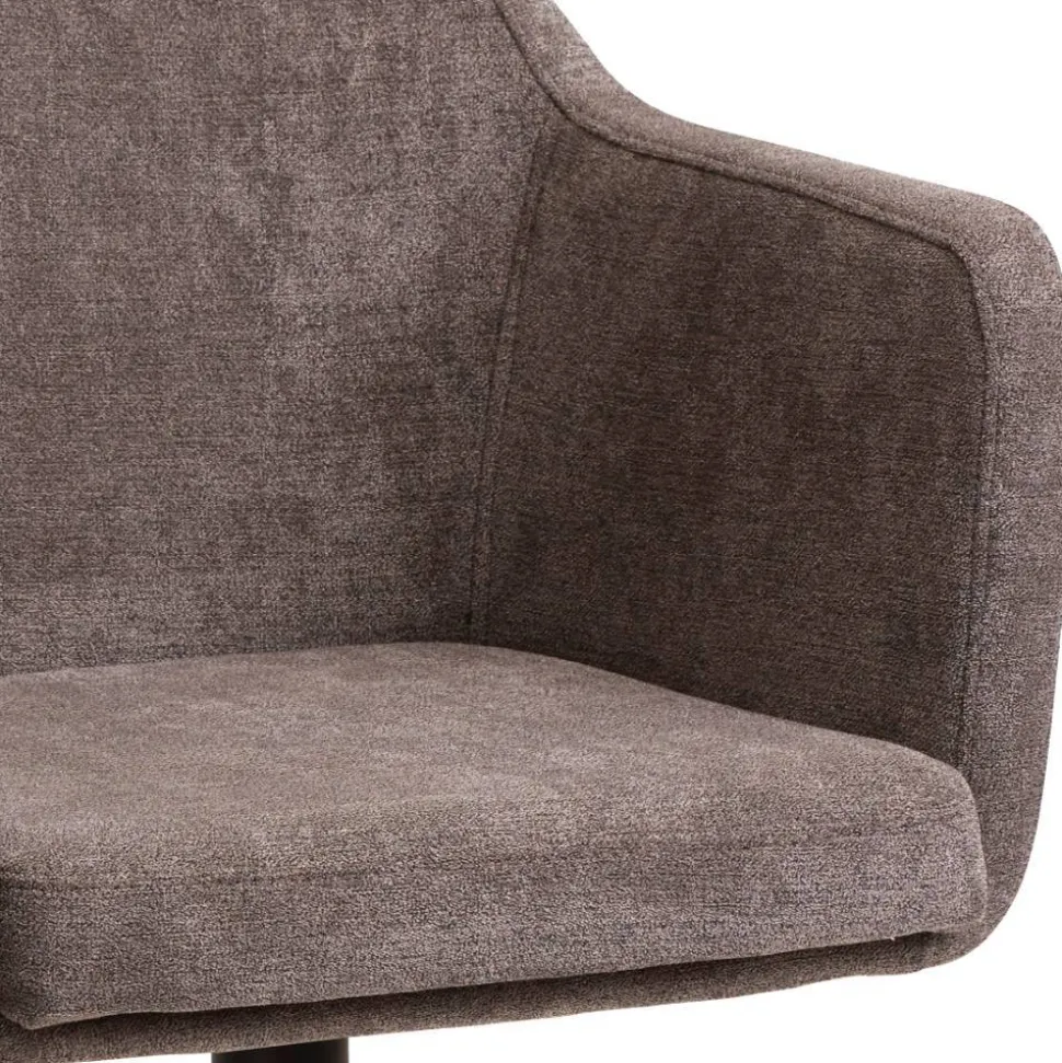Der Armlehnenstuhl „Myrano“ bringt in warmem Braun und elegantem Schwarz zeitlose Gemütlichkeit in Ihr Zuhause. Ob am Esstisch, im Homeoffice oder als stilvoller Solist in einer Leseecke – „Myrano“ fügt sich in moderne wie klassische Wohnkonzepte ein und setzt dabei durch seine kantige Silhouette und das schwarze Stativgestell gekonnte Akzente.