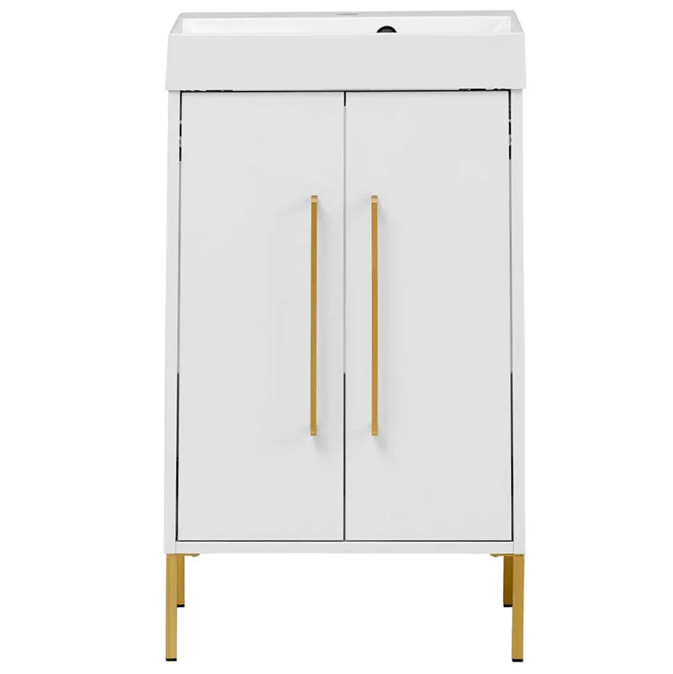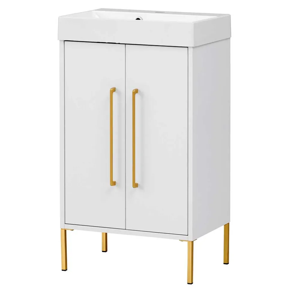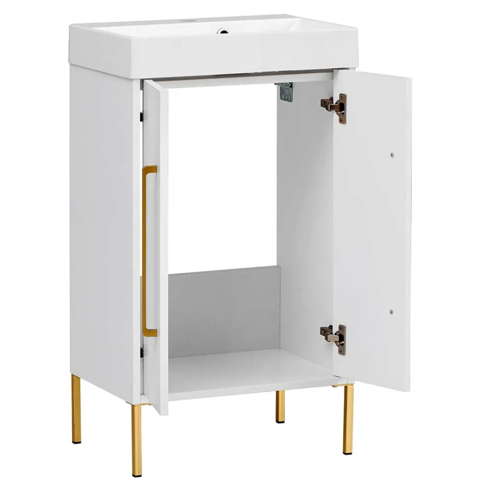 - Attraktiver Waschschrank in Weiß und Goldfarben