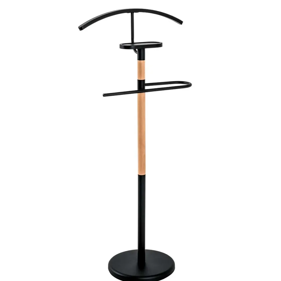 Exas vereint schlichtes Design mit raffinierter Funktionalität und wird so zum stilvollen Begleiter in Ihrem Schlaf- oder Ankleidezimmer. Der reizvolle Materialmix aus robustem, pulverbeschichtetem Stahl und edlem, massivem Buchenholz verleiht diesem Herrendiener eine besondere Eleganz. Die klare Linienführung und der modisch reduzierte Look fügen sich nahtlos in moderne wie klassische Wohnstile ein.
