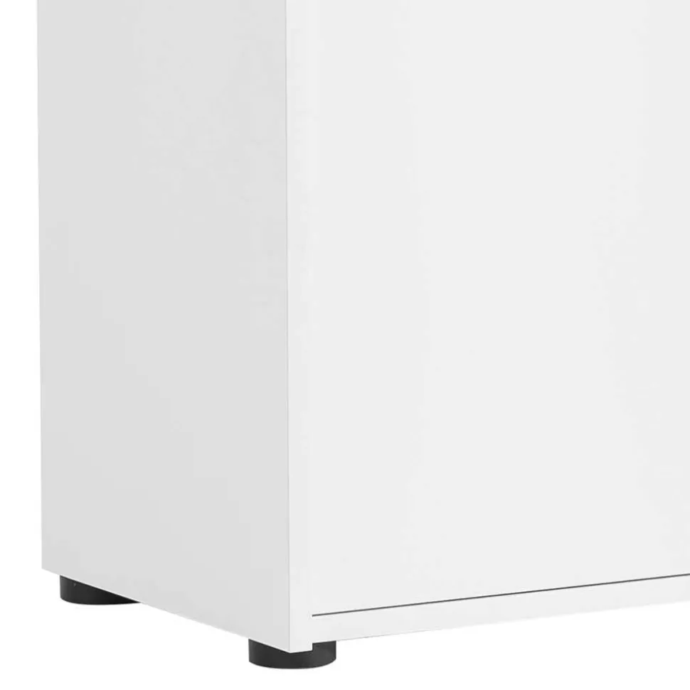 Der Office Tresen „Afrina“ wird aus robuster Spanplatte gefertigt, die mit einer mattweißen Melaminbeschichtung versehen ist. Diese sorgt nicht nur für eine moderne, leicht zu reinigende Oberfläche, sondern macht das Möbelstück auch besonders widerstandsfähig gegenüber täglichen Beanspruchungen. Die verwendeten Materialien garantieren eine lange Lebensdauer und bieten Ihnen gleichzeitig die Flexibilität, den Tresen in verschiedenen Büroräumen einzusetzen. Der Tresen steht sicher auf schwarzen Kunststoff-Bodengleitern, die höhenverstellbar sind, um Unebenheiten im Boden auszugleichen und eine stabile Aufstellung zu gewährleisten.