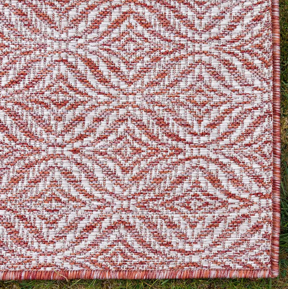 - Attraktiver In- und Outdoorteppich in Rostrot und Cremefarben