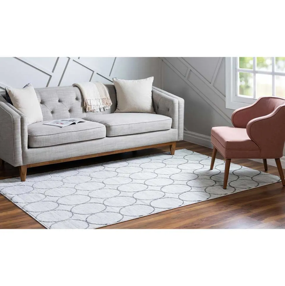 Mit seinem klaren Design und der dezenten Farbgebung bringt der moderne Teppich „Jelsica“ stilvolle Ruhe in Ihre Wohnräume. Die Kombination aus sanftem Cremeweiß und kühlem Grau wirkt zurückhaltend und dennoch charakterstark – ideal für minimalistische Einrichtungen, urbane Lofts oder als ruhiger Kontrast in farbenfrohen Interieurs. Die geometrische Musterung aus Kreisen verleiht dem Teppich „Jelsica“ eine dynamische Note, ohne sich in den Vordergrund zu drängen.