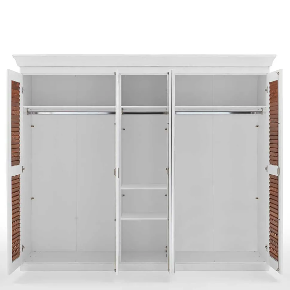 - Drei Fachelemente, jeweils mit einem Einlegeboden und einer Kleiderstange ausgestattet plus mittig zwei zusätzliche Einlegeböden