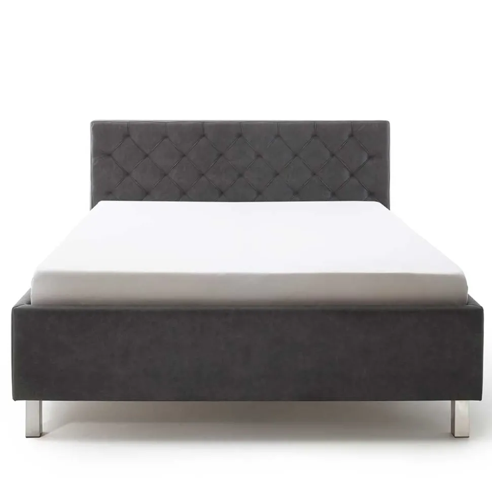 - Erstklassiges Polsterbett in Anthrazit und Chromfarben