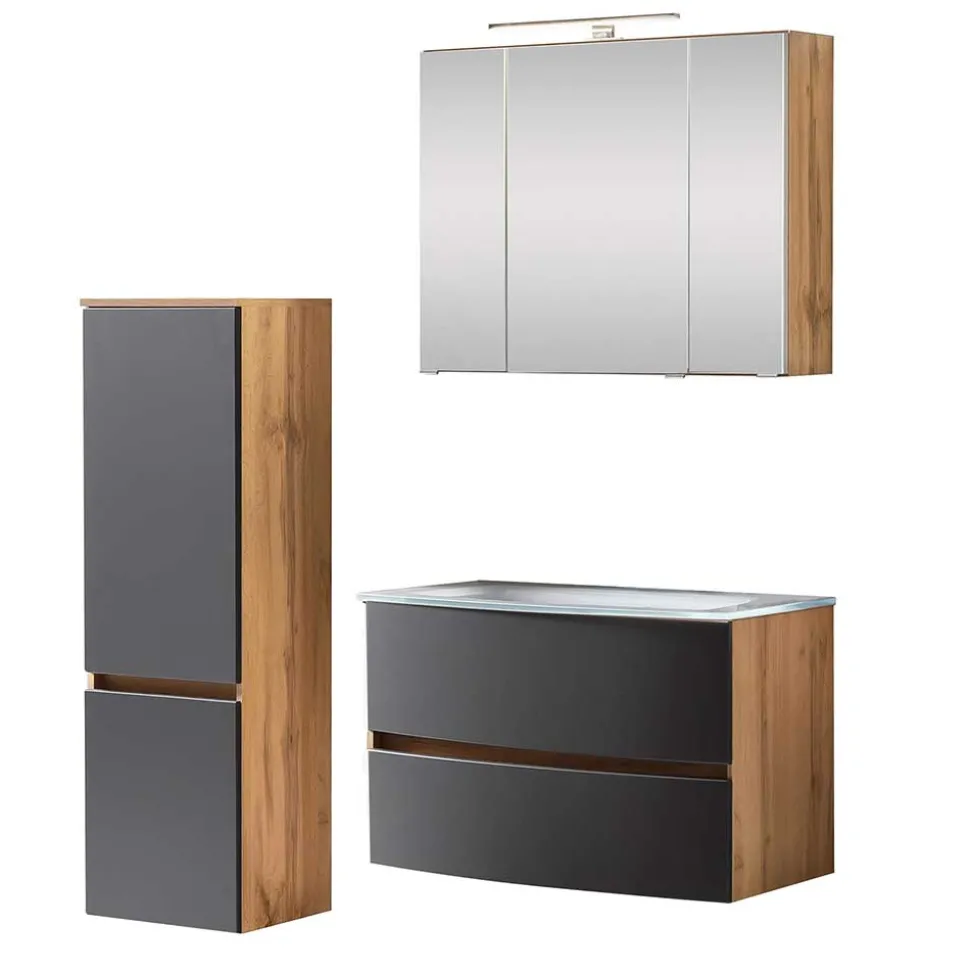 - Exklusives Badmöbel Set in Grau und Wildeichefarben