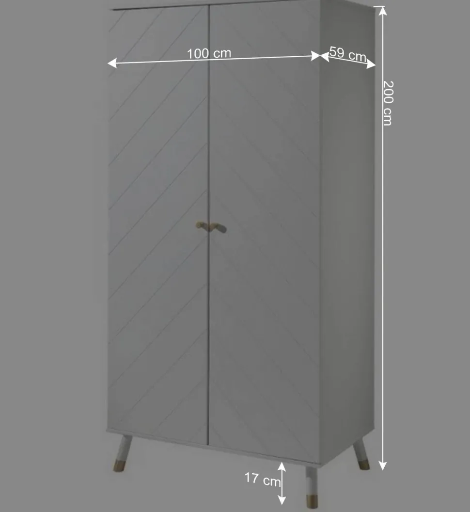 - Innen befinden sich zwei Einlegeboden, BxT: je ca. 95×55 cm und eine Kleiderstange