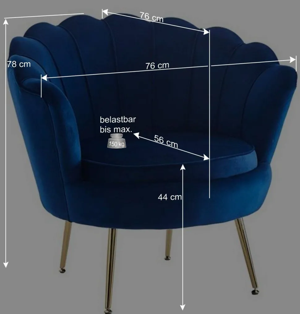 Muschel Design Sessel in Blau Samtbezug – Dotagon