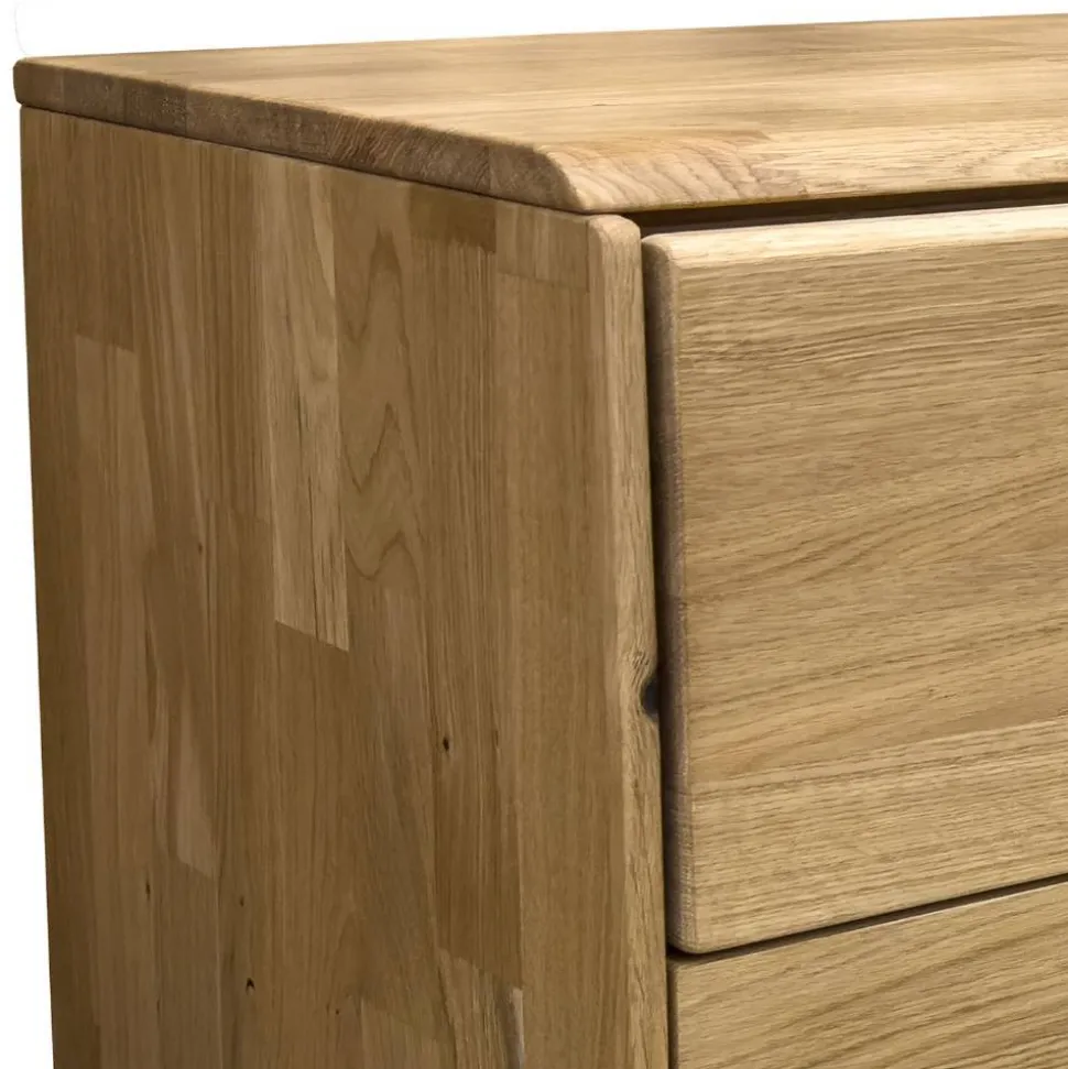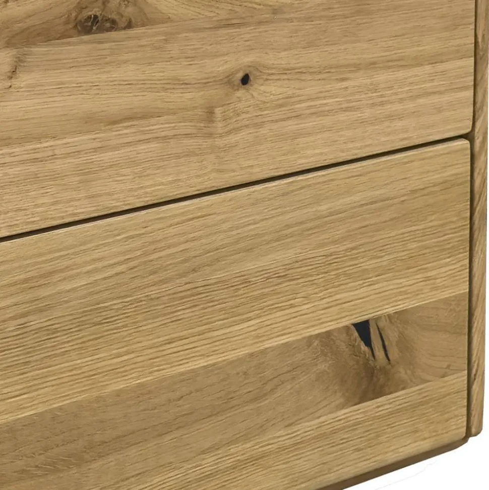 Wildeiche ist mehr als nur Holz – es ist ein Statement für Beständigkeit und Stil. Das robuste Material überzeugt mit seiner hohen Dichte und Härte, was die Nachtkommode Feanor besonders langlebig und widerstandsfähig macht. Gleichzeitig strahlt es Wärme und Ruhe aus. Jeder Griff über die samtig geölte Oberfläche ist ein Erlebnis: weich, angenehm und dennoch kraftvoll – ein spürbares Zeichen echter Handwerkskunst. Die natürliche Maserung variiert von Stück zu Stück und macht jede Kommode zu einem persönlichen Einzelstück mit Seele.