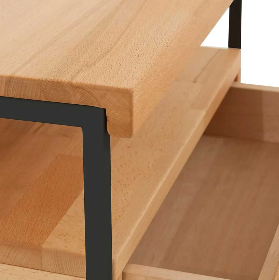 - Gefertigt aus massivem Kernbucheholz und Metall