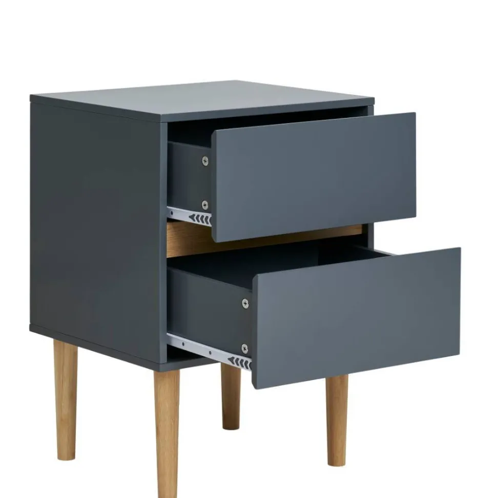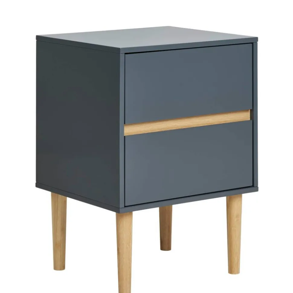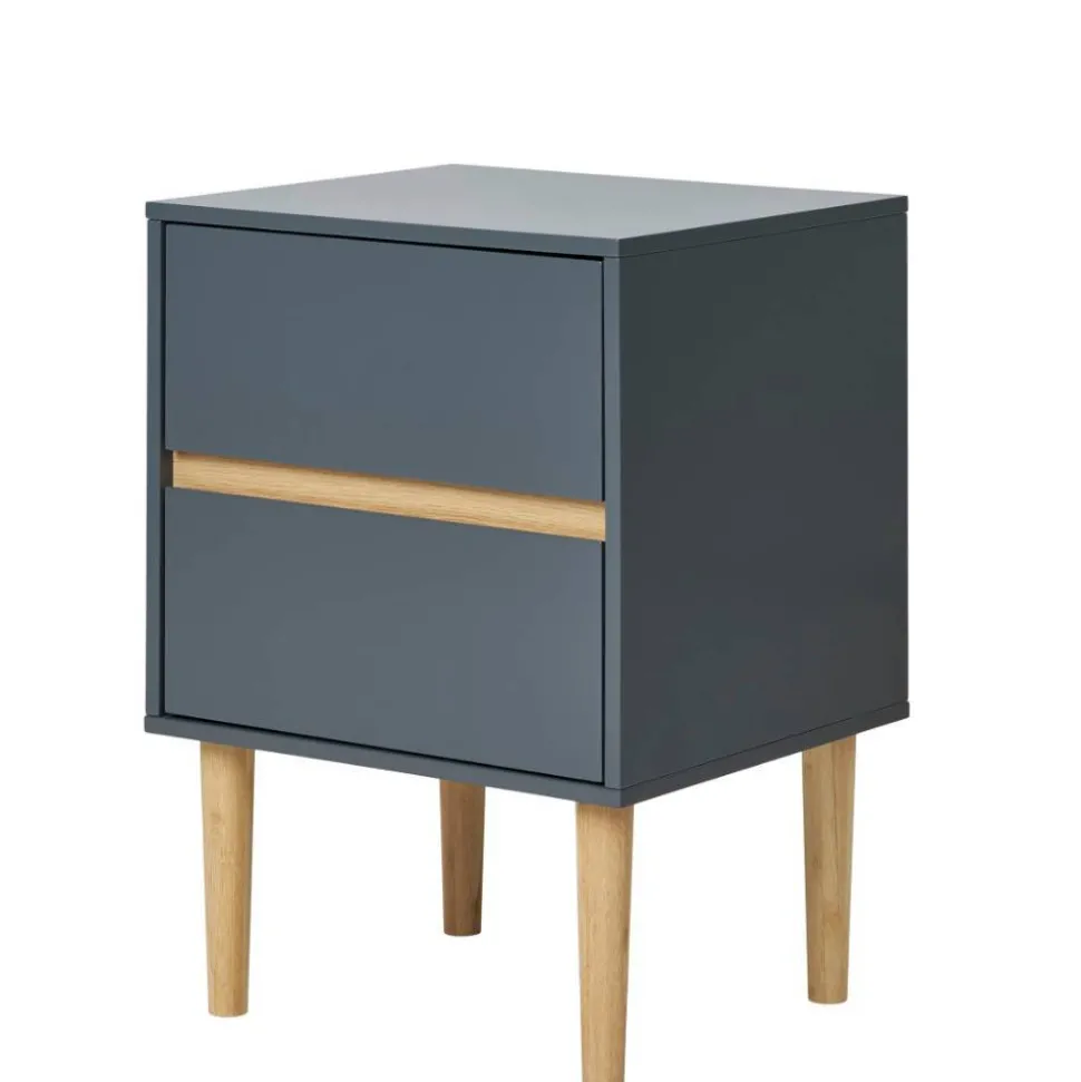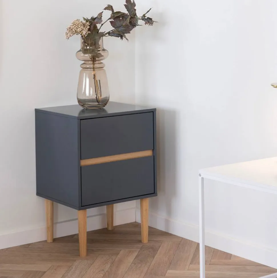 - Attraktive Nachtkommode in Dunkelgrau und Kieferfarben