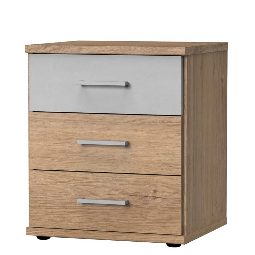 - Praktische Nachtkommode in Eichefarben und Betonoptik Lichtgrau