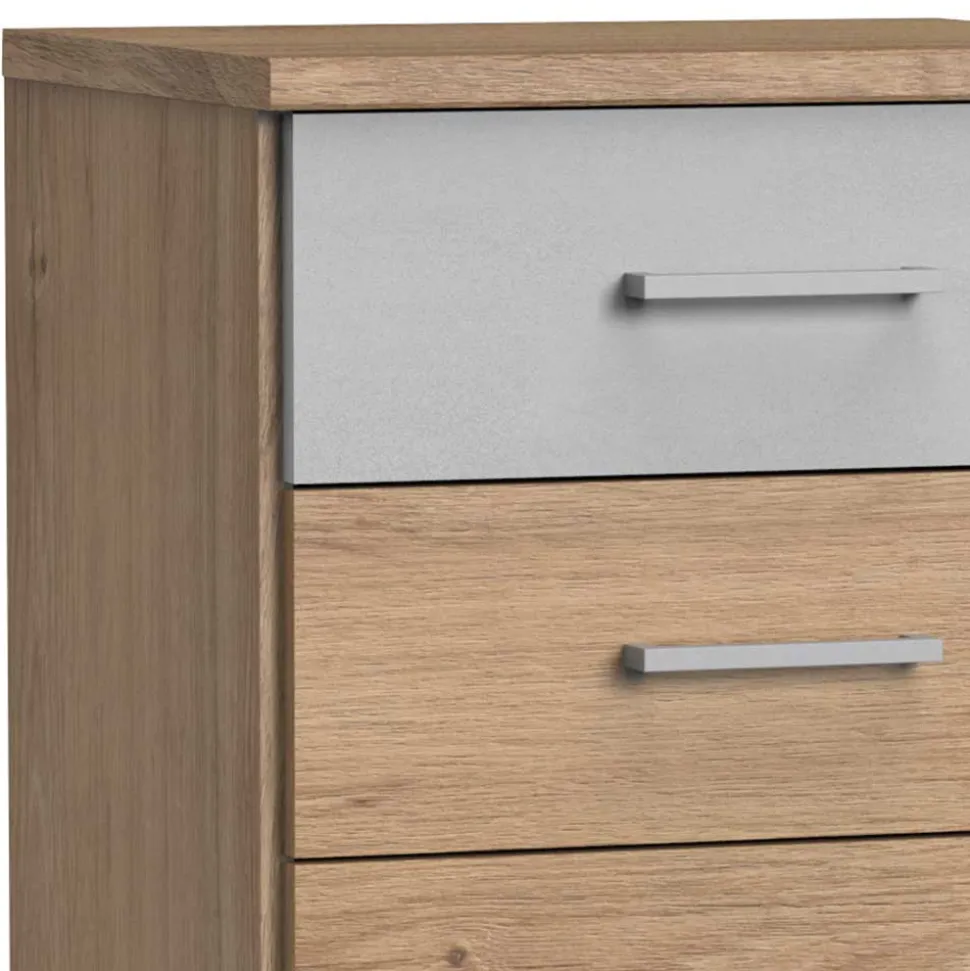 Der moderne Look der Nachtkommode „Anca“ besticht durch den ansprechenden Farbkontrast aus Holzoptik Plankeneiche und Betonoptik Lichtgrau. Diese Kombination verleiht Ihrem Raum eine zeitgemäße Eleganz und fügt sich harmonisch in verschiedene Einrichtungsstile ein. Die pflegeleichten, folierten Oberflächen sind strapazierfähig und somit ideal für den täglichen Gebrauch – perfekt für ein Möbelstück, das sowohl praktisch als auch langlebig sein soll.