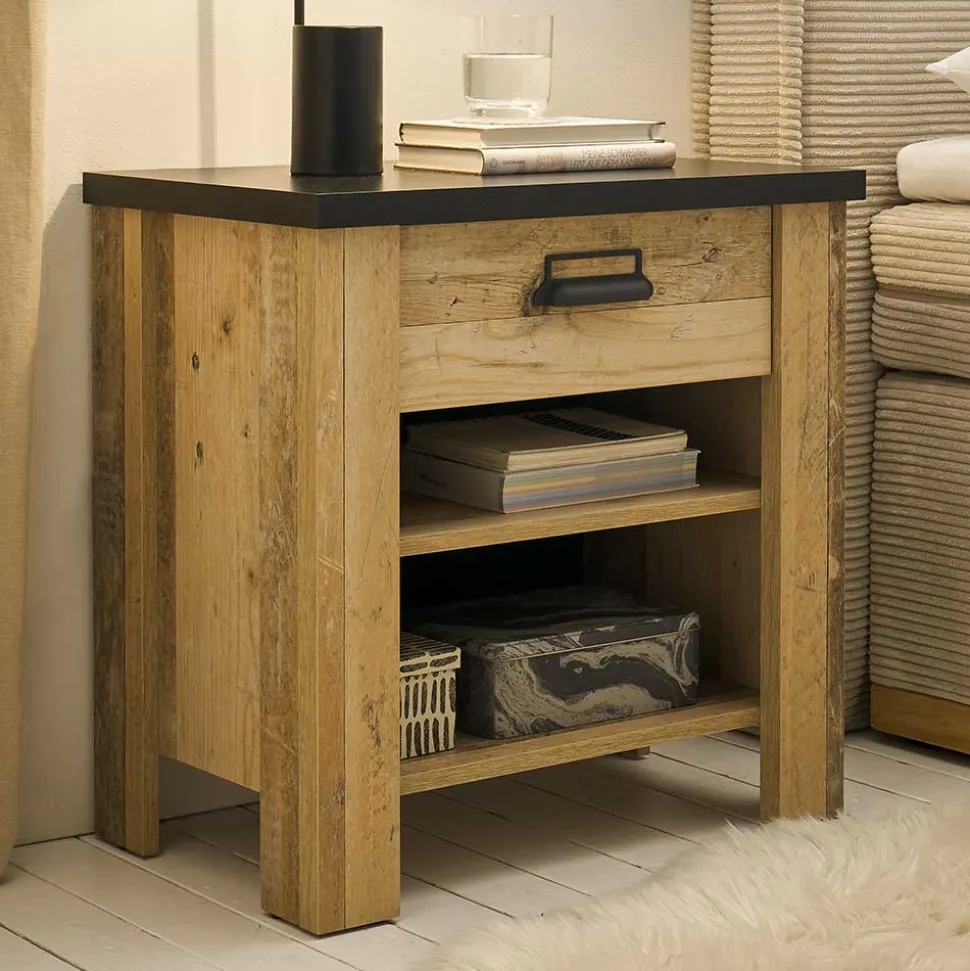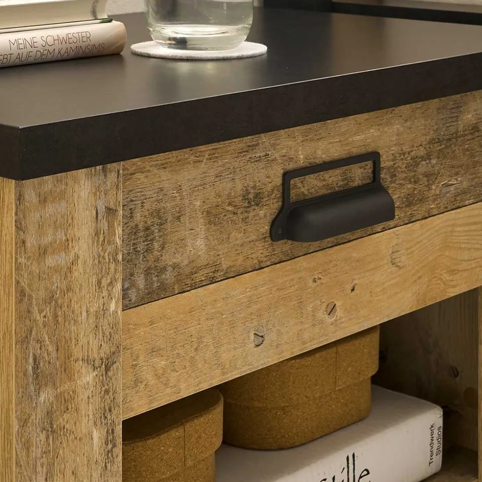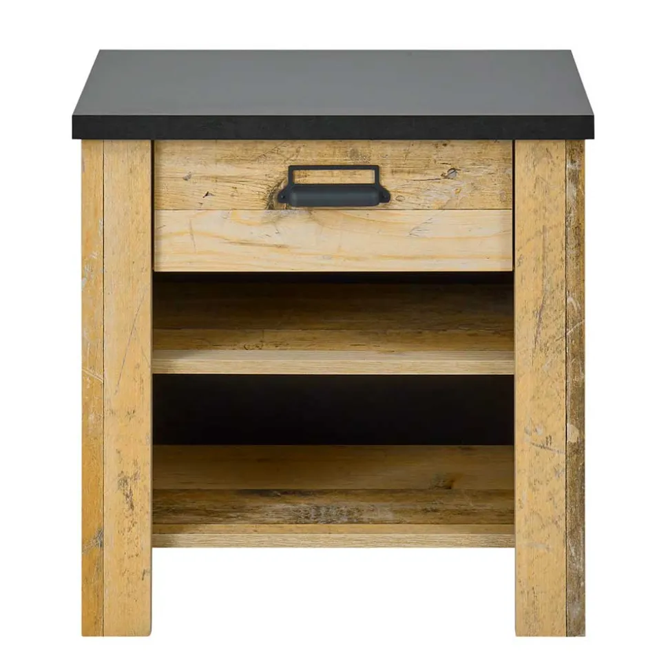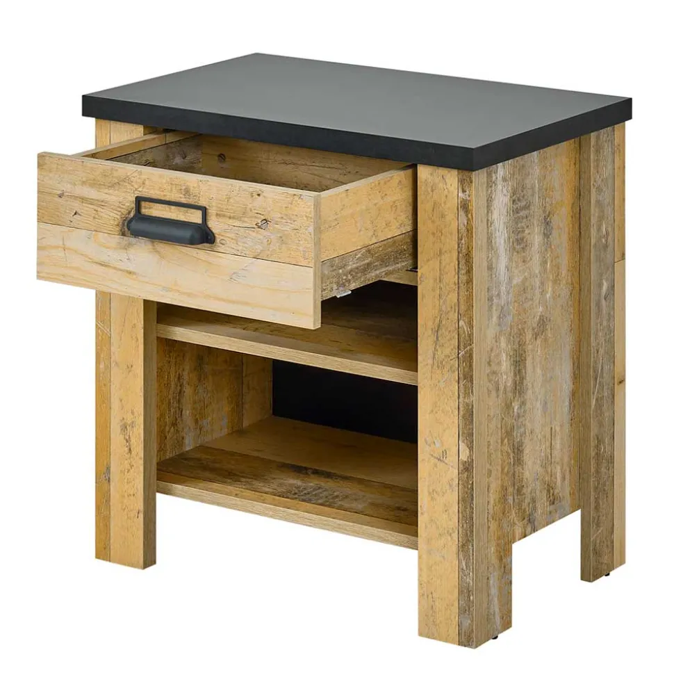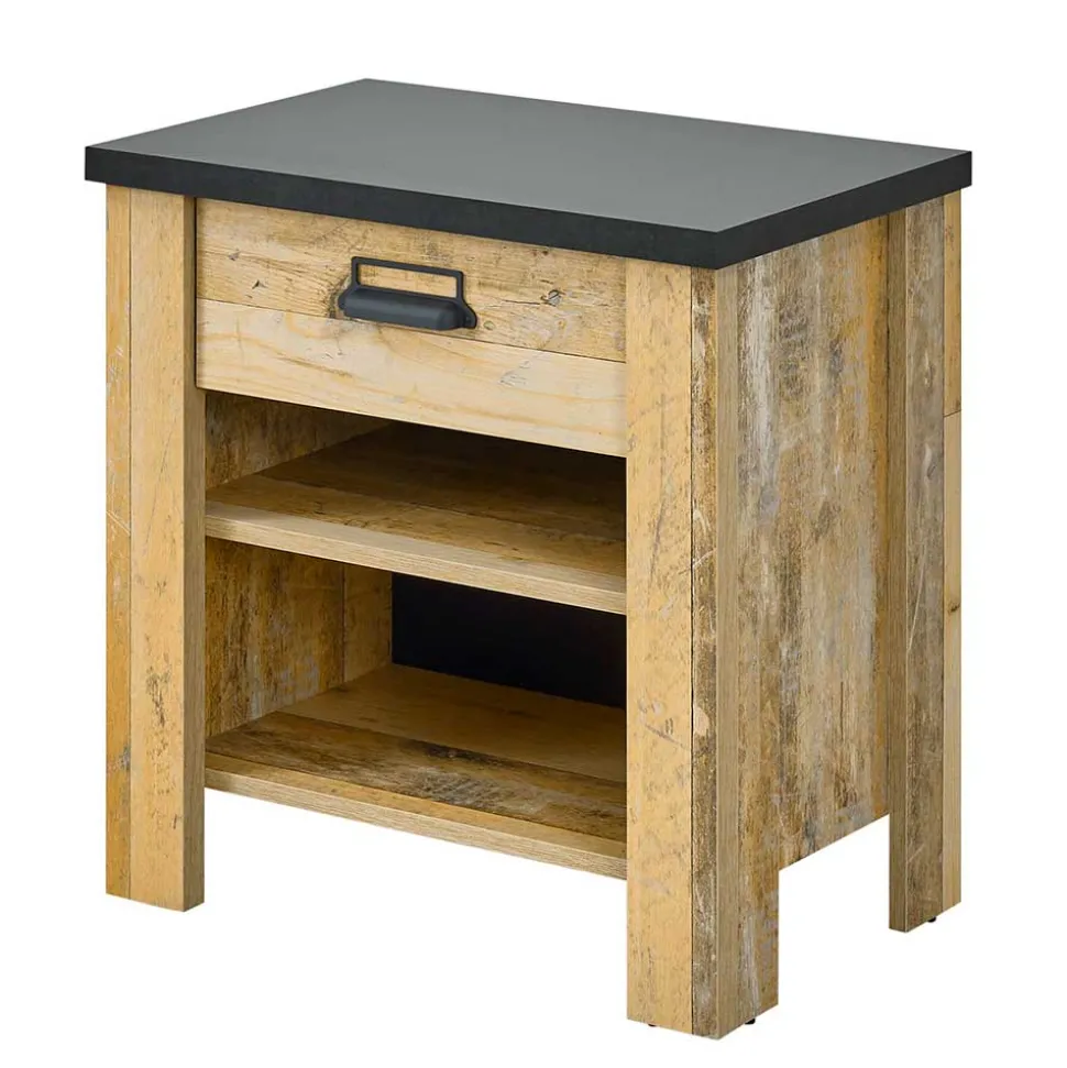 - Markante Nachtkommode in Altholzoptik verwittert und Anthrazit