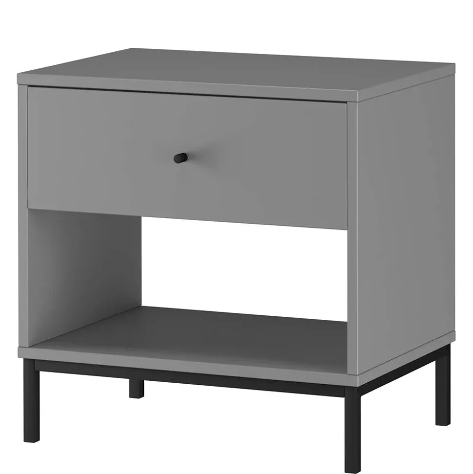 Dank der durchdachten Aufteilung bietet die Nachtkonsole „Lagista“ ausreichend Platz für all Ihre wichtigen Utensilien. Die leichtgängige Schublade mit Metallauszug bietet geschützten Stauraum für kleinere Gegenstände, während das offene Fach darunter ideal für Bücher, Zeitschriften oder Dekoelemente genutzt werden kann. Der schwarze Stiftgriff aus Metall ermöglicht ein müheloses Öffnen und rundet das Design harmonisch ab.