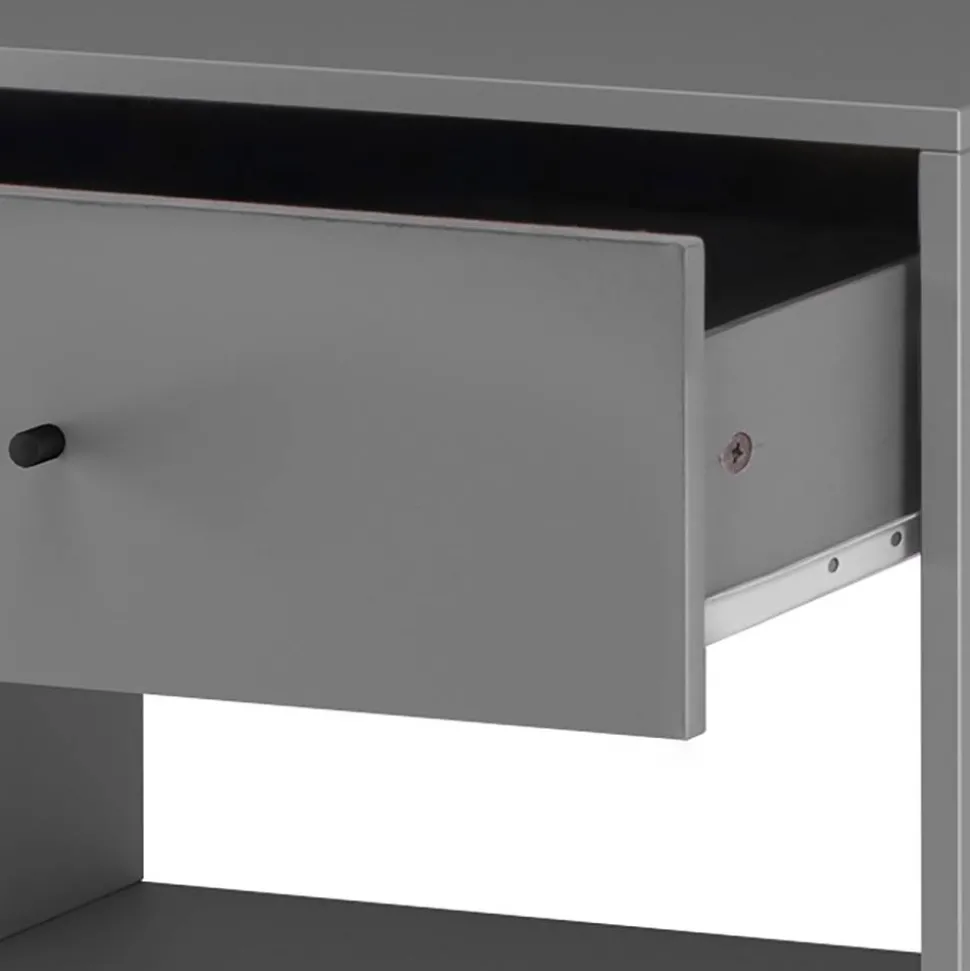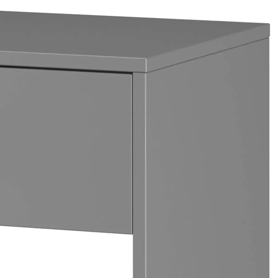 Die Nachtkonsole „Lagista“ überzeugt mit einem minimalistischen, geradlinigen Design, das in jeder Schlafzimmereinrichtung Akzente setzt. Die harmonische Kombination aus Grau und Schwarz verleiht dem Möbelstück eine moderne Ausstrahlung, die sich mühelos mit verschiedenen Wohnstilen kombinieren lässt. Ob als dezente Ergänzung zum Bett oder als optischer Hingucker – diese Konsole sorgt für Ordnung und Stil in Ihrem Schlafzimmer.