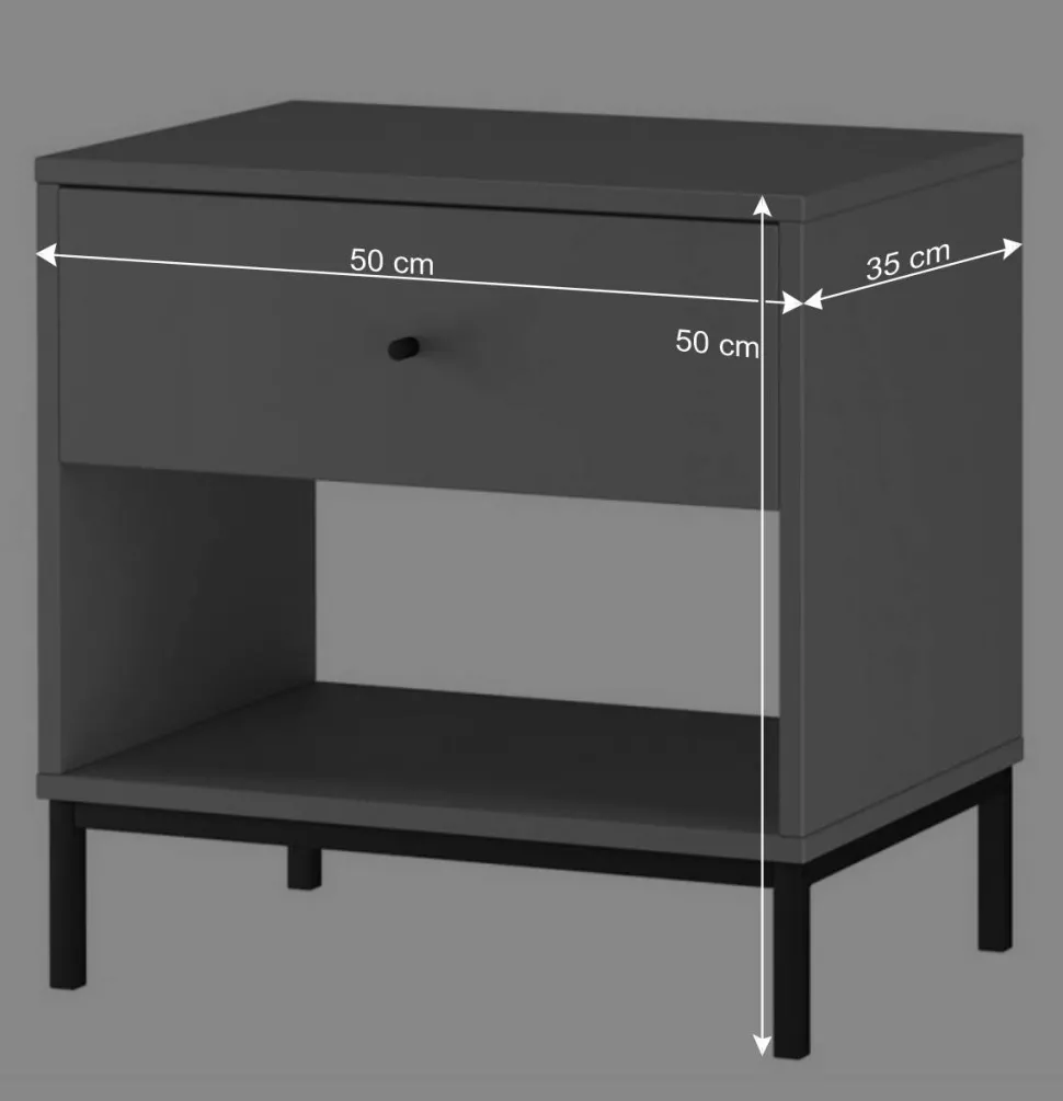 Mit einer Breite von 50 cm, einer Höhe von 50 cm und einer Tiefe von 35 cm ist die Nachtkonsole kompakt und platzsparend – perfekt für kleine Schlafzimmer oder als Beistelltisch in anderen Wohnbereichen. Mit einem Gewicht von ca. 13 kg lässt sie sich leicht umstellen, ohne an Stabilität zu verlieren.