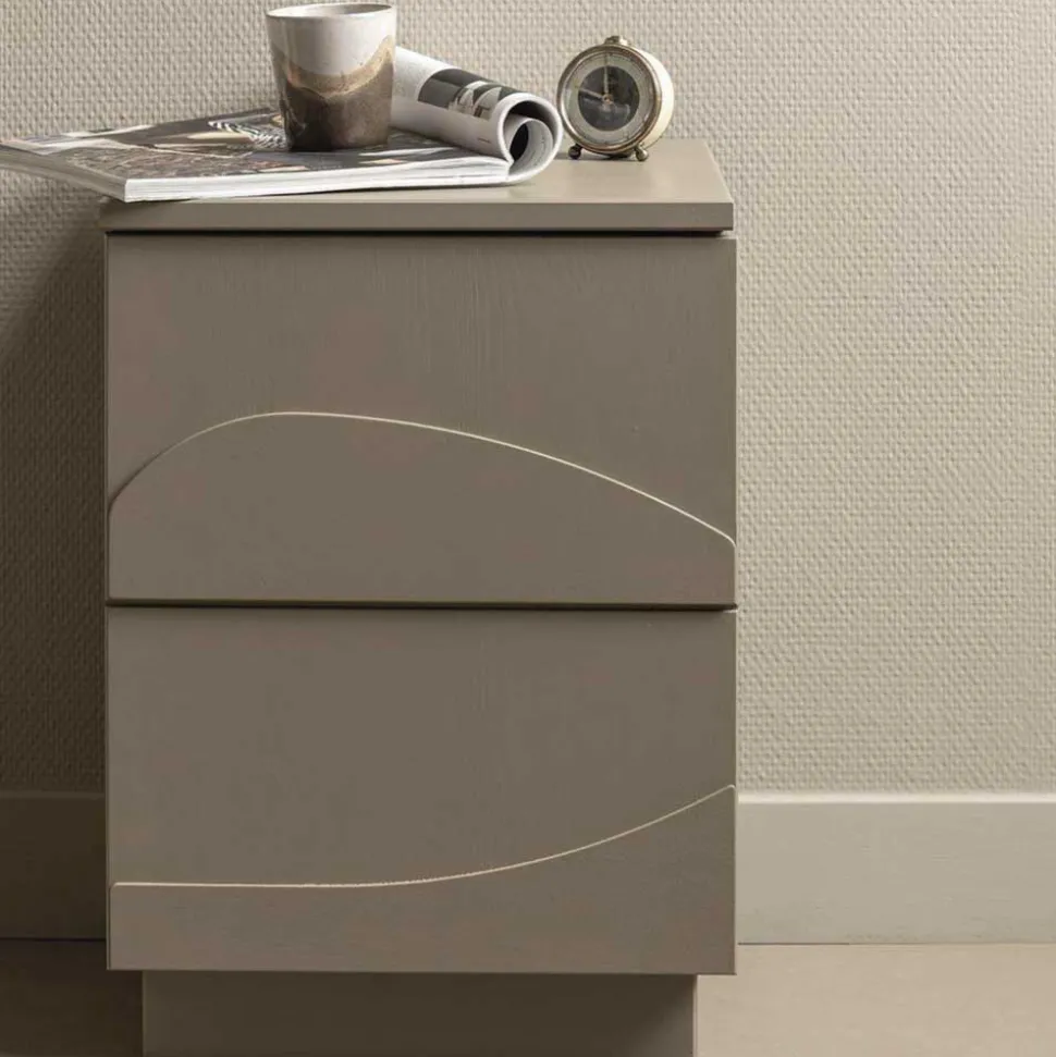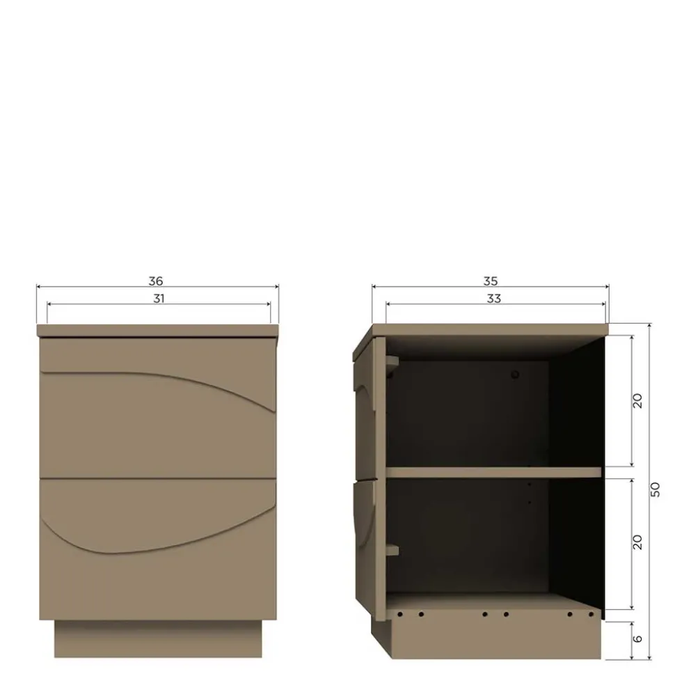 Der Nachtschrank „Ophra“ ist die perfekte Ergänzung für jedes Schlafzimmer und kombiniert praktischen Stauraum mit einer ansprechenden Optik. Die schlammfarbene Lackierung verleiht dem Möbelstück eine sanfte, natürliche Ausstrahlung, die sich harmonisch in verschiedene Einrichtungsstile einfügt. Die kunstvoll gestaltete Front mit plastischer Struktur sorgt für eine besondere visuelle Tiefe und macht den Nachtschrank zu einem echten Hingucker neben Ihrem Bett.