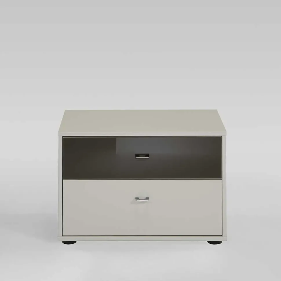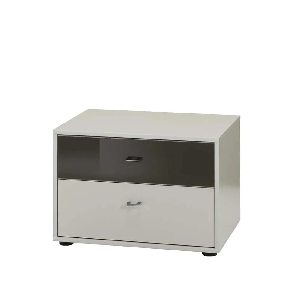 - Weiße Oberflächen foliert, oberer Schubkasten mit Glas beschichtet
