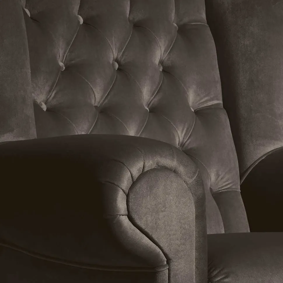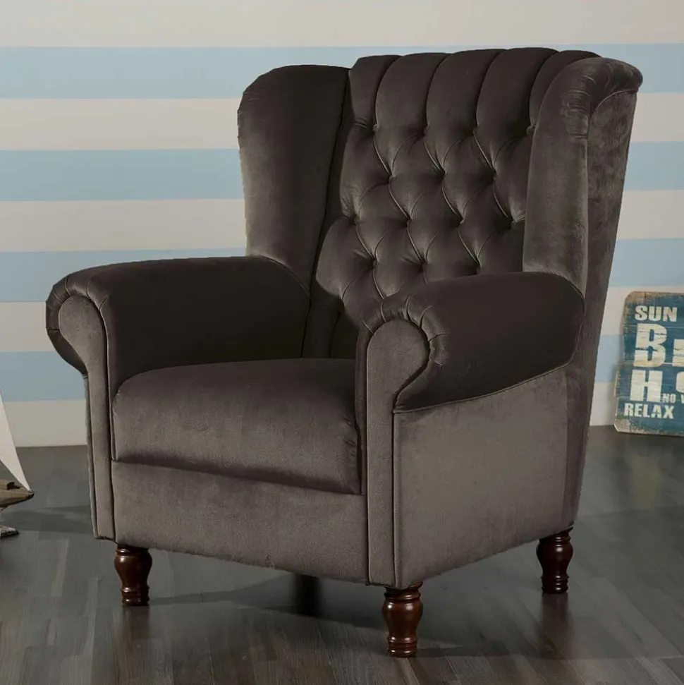 Der Ohrenbackensessel „Farella“ bringt die zeitlose Eleganz des klassischen Chesterfield Looks in Ihr Zuhause. Dieses Design, das durch seine markante Knopfsteppung und die charakteristischen „Ohren“ an den Seiten besticht, verleiht jedem Raum eine Aura von Prestige und Tradition. Der Chesterfield Look steht seit Jahrhunderten für erlesene Handwerkskunst und exklusiven Stil, der sich nahtlos in moderne wie auch traditionelle Wohnkonzepte einfügt.