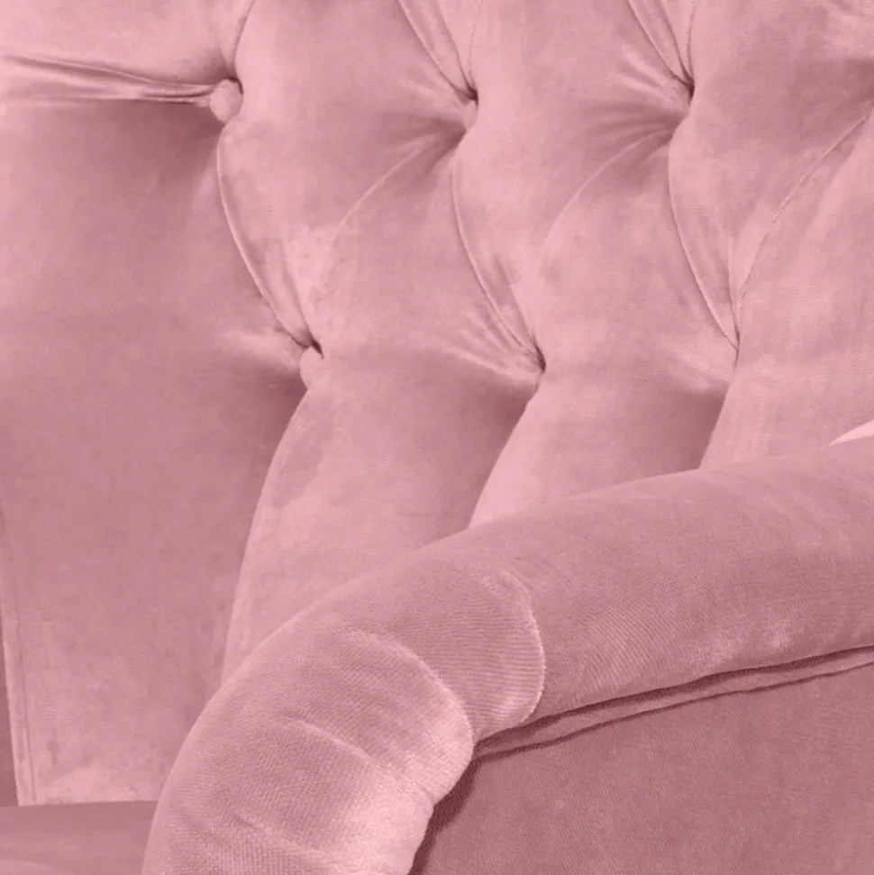 Das tragende Untergestell aus Holz und Holzwerkstoff gewährleistet Stabilität und Langlebigkeit, während die Wellenunterfederung im Sitz und die Spanngurte im Rücken für optimalen Komfort sorgen. Die Polsterung mit hochwertigem Schaumstoff und der strapazierfähige Bezug aus Samtvelours (100 % Polyester) vereinen Luxus und Praktikabilität auf höchstem Niveau. Die dekorativen tiefen Steppungen und Knopfheftungen verleihen dem Sessel eine edle Note und machen ihn zum Blickfang in jedem Raum.