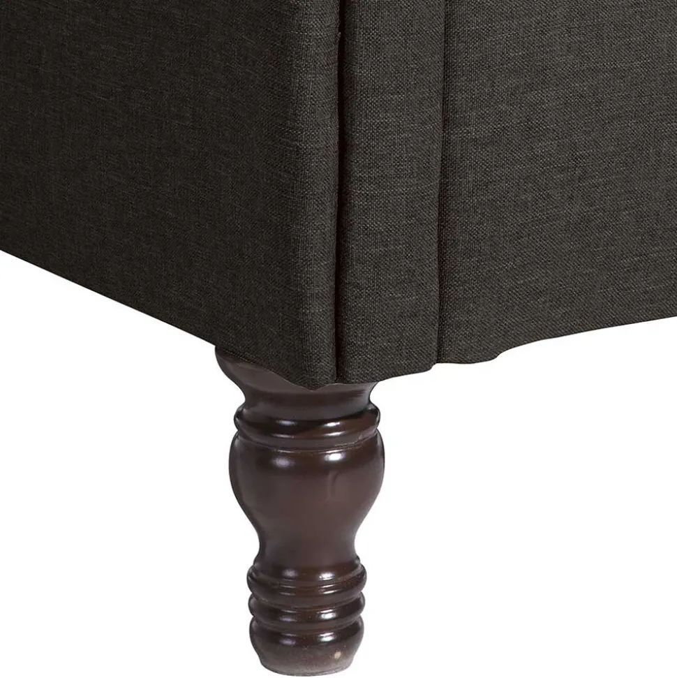 - Aufwändige Gestaltung mit seitlichen Ohren und Knopfsteppungen