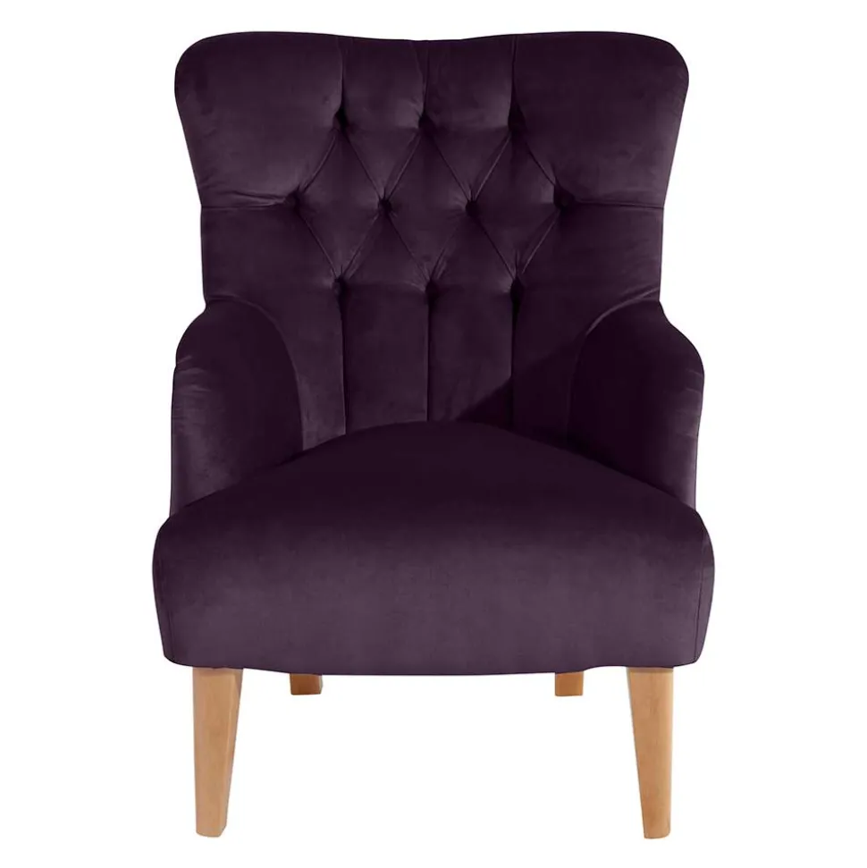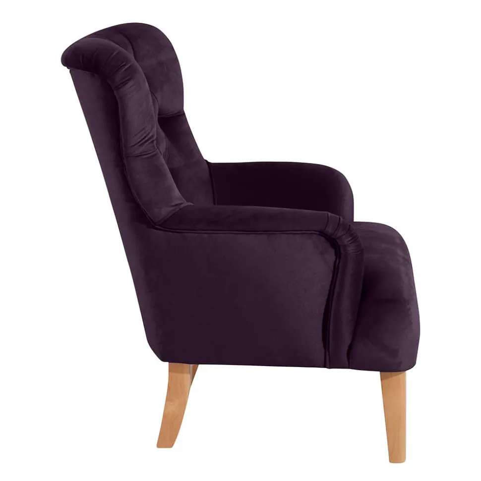 - Gemütlicher Sessel in Dunkellila und Buchefarben