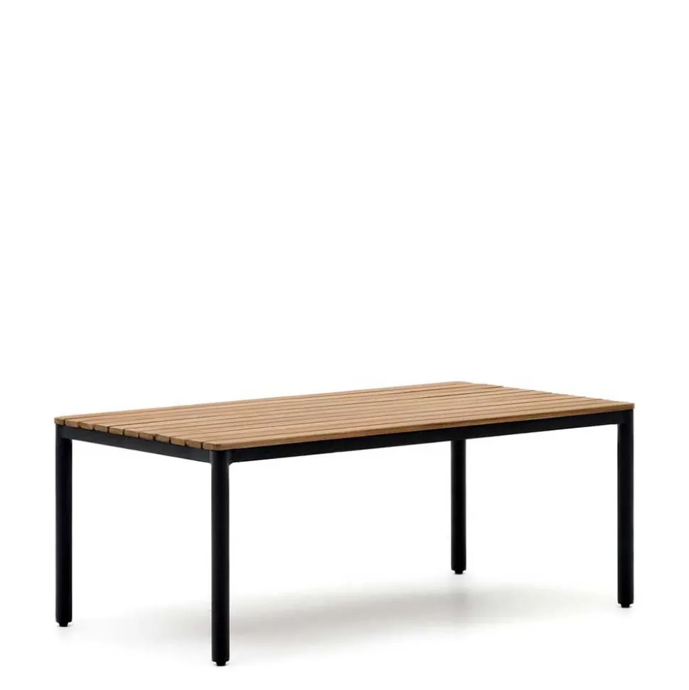 Mit seinen Maßen von 100 x 55 cm (BxHxT) bietet der Tisch ausreichend Platz für Getränke, Snacks oder dekorative Akzente. Die aus Holzleisten mit Zwischenräumen gefertigte Tischplatte verleiht dem Design Leichtigkeit und sorgt für einen natürlichen Look. Das stabile Aluminiumgestell gewährleistet eine langlebige Nutzung – auch bei häufigem Gebrauch.