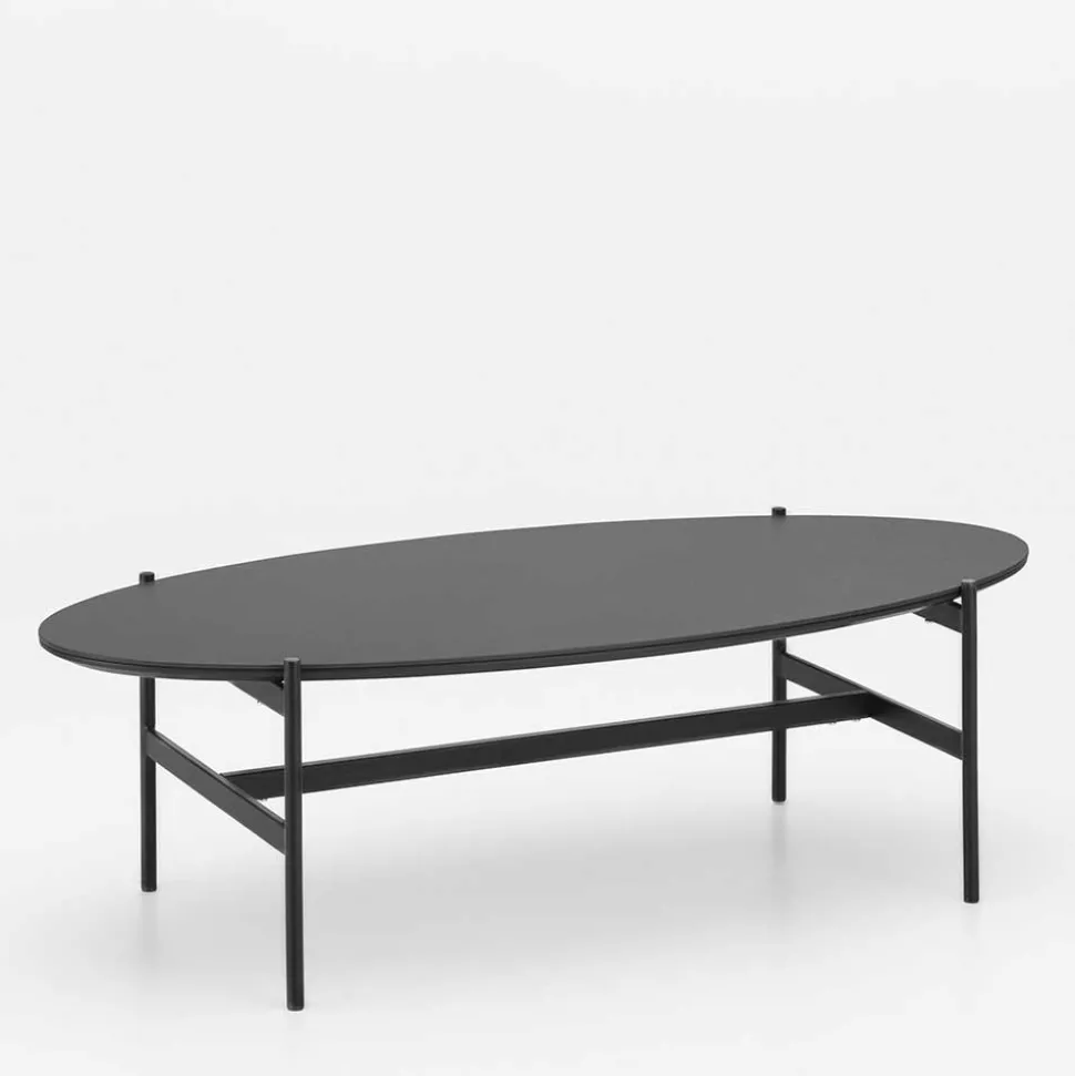 - Schwarz lackiertes Vierfußgestell aus Stahl mit zusätzlichen Verstrebungen