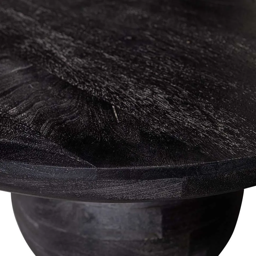 Die in Schwarz lackierten Oberflächen lassen die kraftvolle Holzmaserung noch deutlich durchscheinen. Diese besondere Veredelung bringt Tiefe ins Design und lässt das Material in seiner ganzen Ursprünglichkeit durchblitzen – ein spannendes Wechselspiel zwischen Modernität und organischer Struktur. So entsteht ein eleganter Look, der sich mühelos in moderne wie auch rustikale Wohnkonzepte einfügt. Das Zusammenspiel von Farbe und Textur vermittelt Stilbewusstsein und Understatement zugleich.