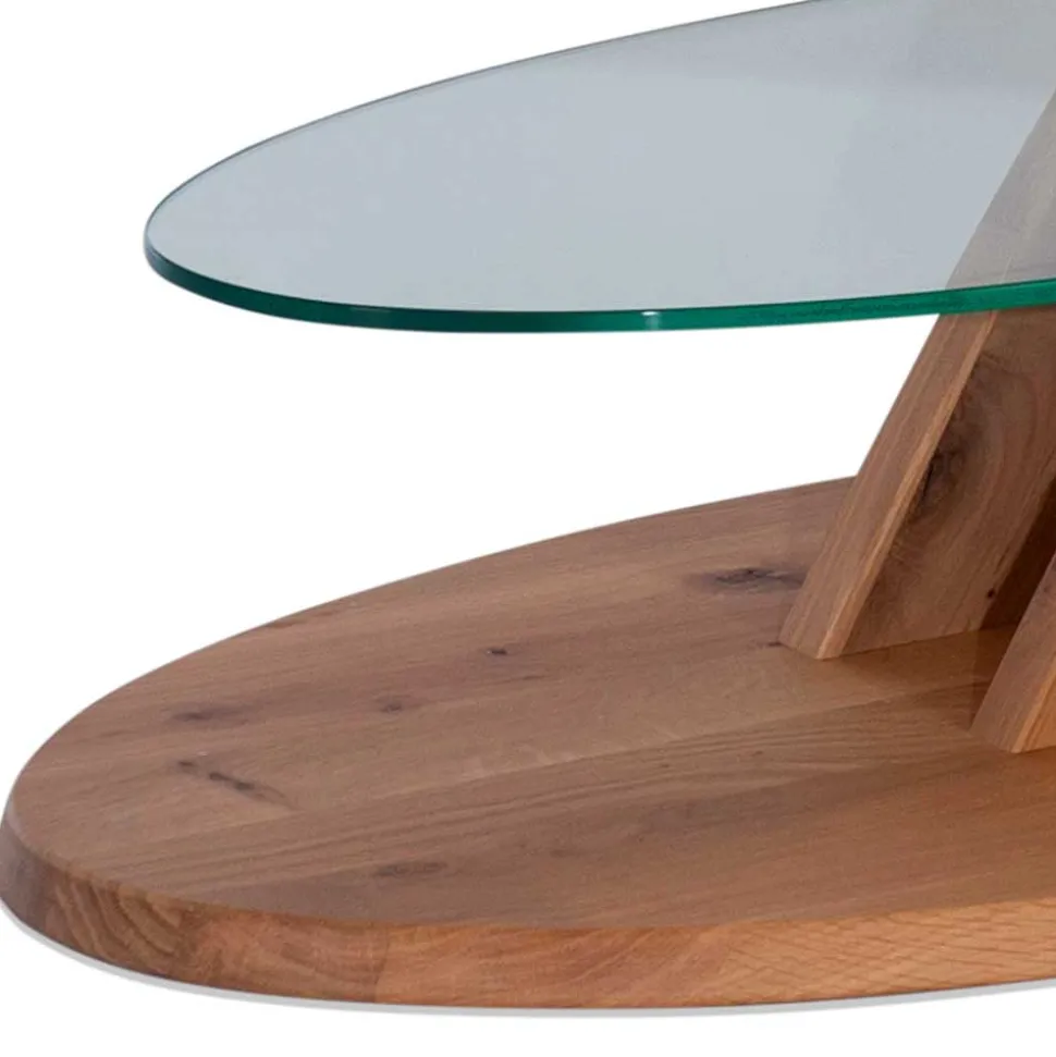Massives Wildeichenholz, bekannt für seine Robustheit und Langlebigkeit, bildet die Grundlage dieses Meisterwerks. Die natürlichen Maserungen und Farbtöne der Wildeiche bringen Wärme und Natürlichkeit in Ihr Zuhause, während die lackierte Oberfläche nicht nur Schutz bietet, sondern auch die Reinigung zum Kinderspiel macht. Die gläsernen Elemente fügen eine leichte, fast schwebende Eleganz hinzu, die das moderne Design unterstreicht.