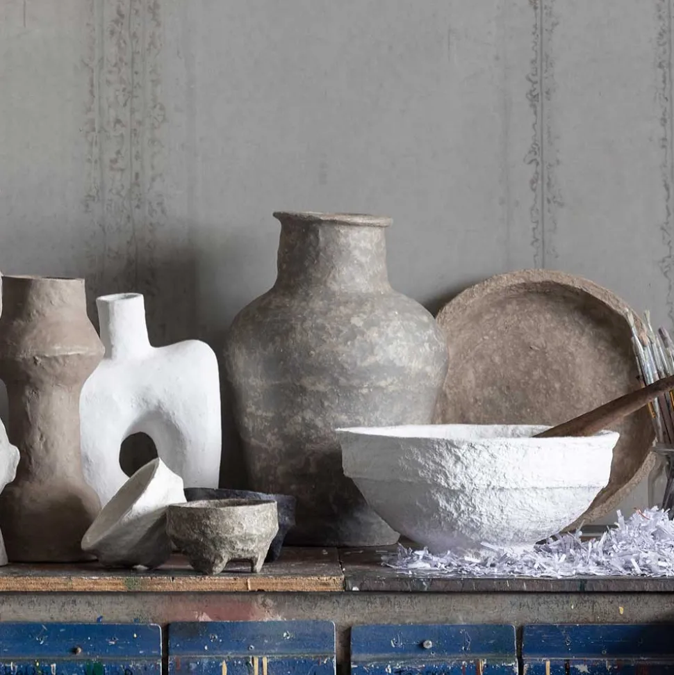 Hergestellt aus Pappmaché, zeigen die Vasen „Marco“, wie wirkungsvoll Nachhaltigkeit und Kreativität kombiniert werden können. Die handgefertigte Verarbeitung sorgt dafür, dass keine Vase der anderen gleicht – Unterschiede in Größe, Form und Oberfläche sind gewollt und unterstreichen die Authentizität jedes Exemplars. Geringe Maßabweichungen von mehreren Zentimetern sind Ausdruck echter Handwerkskunst und kein Makel, sondern ein Qualitätsmerkmal.