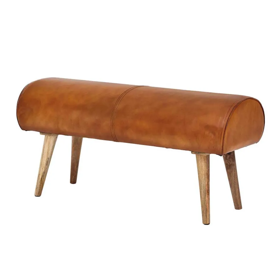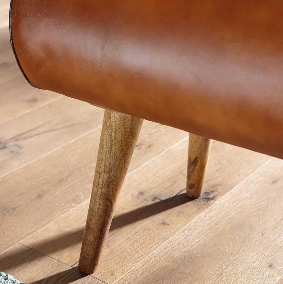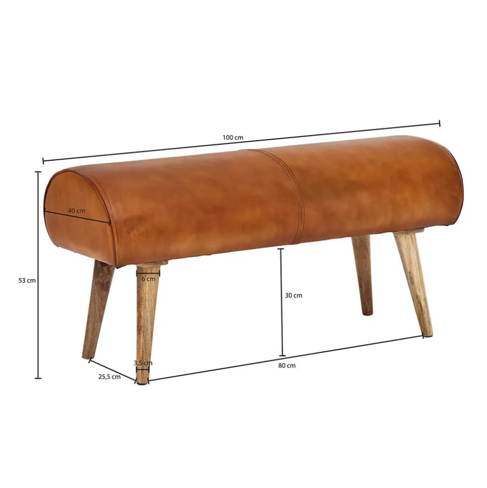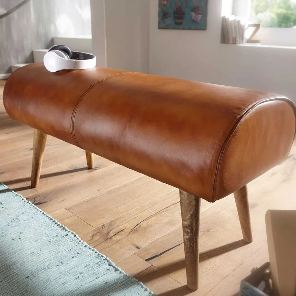 - Kultige Sitzbank in Cognac Braun und Mangoholz Naturfarben