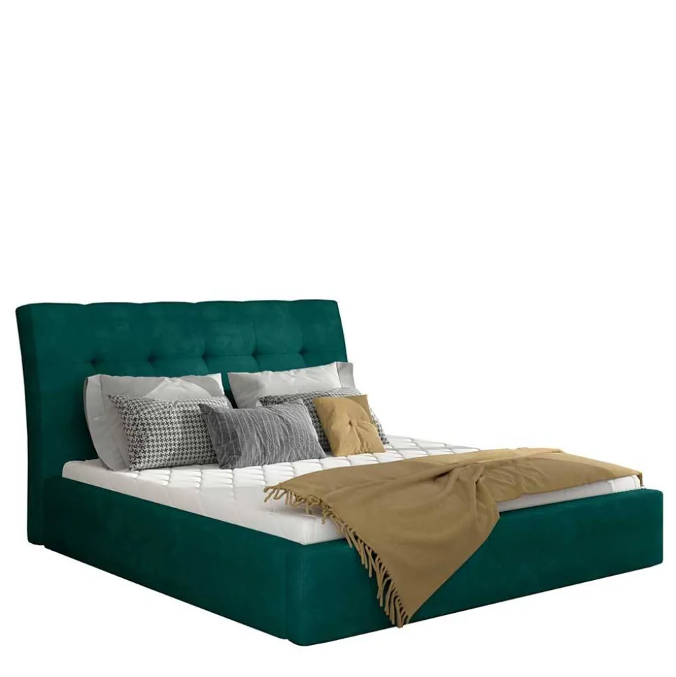 Mit seinem modernen und stilvollen Look wird das Polsterbett „Janilea“ zum absoluten Eyecatcher in Deinem Schlafzimmer. Der luxuriöse Velours-Bezug in einem tiefen, edlen Dunkelgrün sorgt für einen Hauch von Eleganz und Gemütlichkeit zugleich. Velours, ein hochwertiger Stoff aus 100 % Polyester, besticht durch seine samtige Oberfläche, die nicht nur unglaublich weich ist, sondern auch langlebig und strapazierfähig bleibt. Flecken oder Abnutzung? Kein Problem – Velours ist pflegeleicht und behält seinen edlen Look über Jahre hinweg.