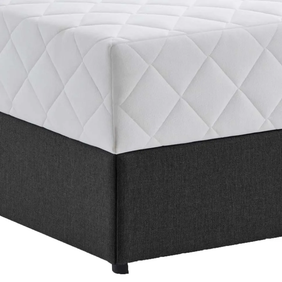 Ein Außenbezug aus anthrazitfarbenem Strukturstoff (100 % Polypropylen) verleiht dem Bett eine zeitlose Ästhetik und sorgt für eine angenehme Haptik.
