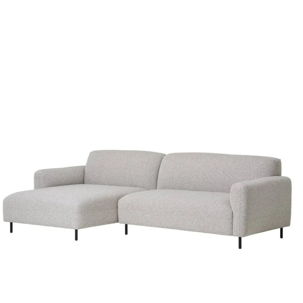 Das Untergestell aus hochwertigem Holzwerkstoff sorgt für Stabilität, während die bequeme Polyurethanschaumpolsterung mit einer Dichte von 35–39 kg/m³ für angenehmen Sitzkomfort steht. Der Bouclé-Bezug aus 100 % Polyester ist nicht nur besonders pflegeleicht, sondern auch strapazierfähig – mit einer Scheuertourenfestigkeit von 25.000 nach Martindale bestens für den Alltag gerüstet.