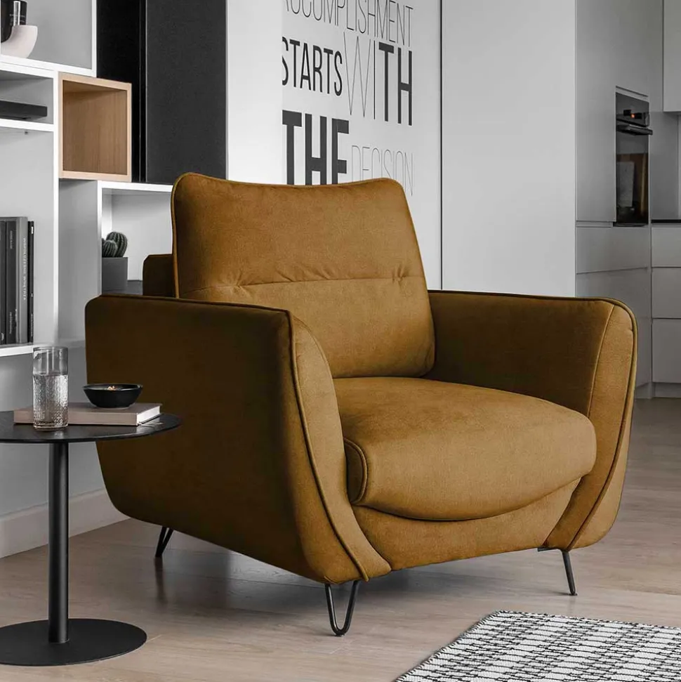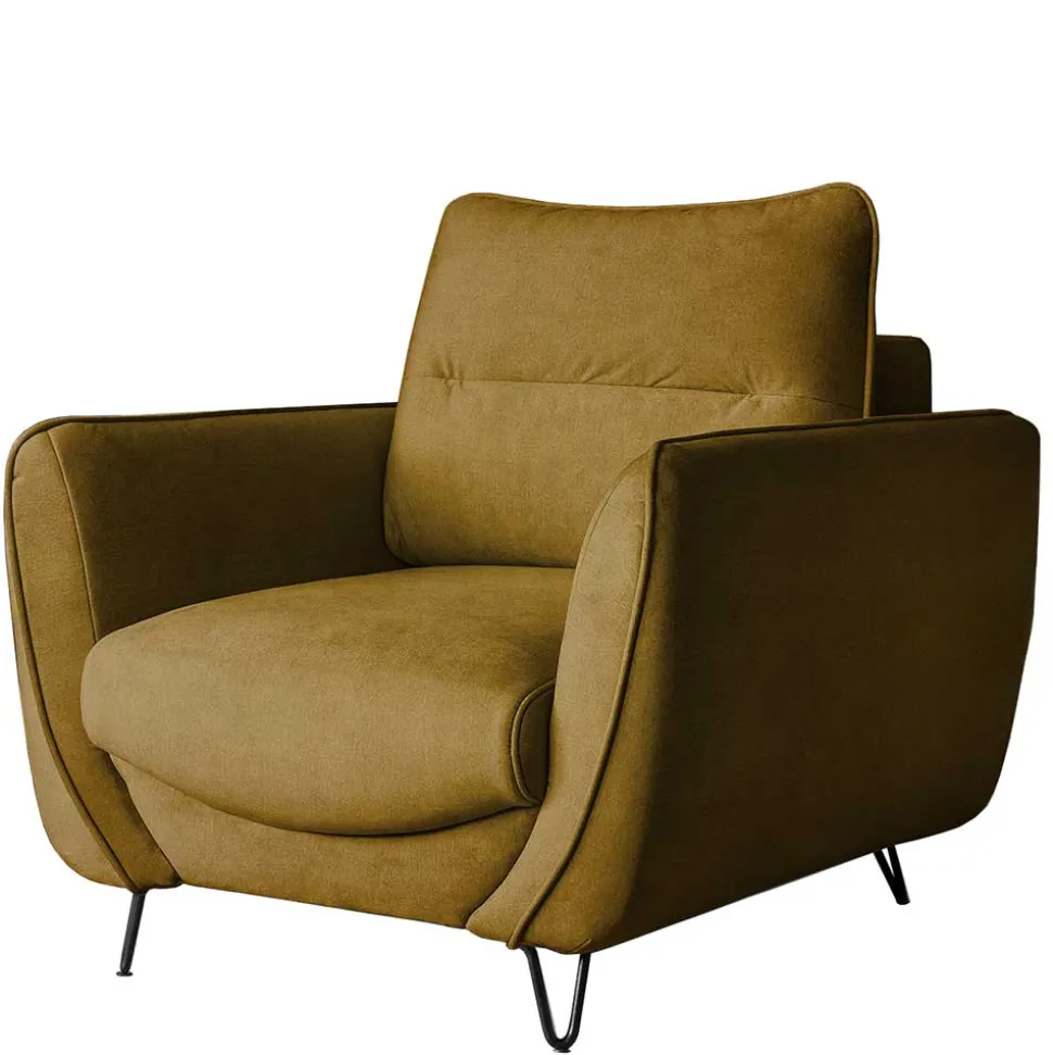 Der Sessel ist mit einer Schaumstoffpolsterung ausgestattet, die nicht nur bequem, sondern auch formstabil ist. Dieser hochdichte Schaum passt sich Ihrem Körper an und bietet so individuellen Sitzkomfort, ohne an Elastizität zu verlieren. Der weiche Samtbezug in leuchtendem Senfgelb aus 100 % Polyester fühlt sich nicht nur angenehm an, sondern ist auch äußerst pflegeleicht und langlebig. Samt als Material ist bekannt für seine weiche Oberfläche, die Licht und Farbe intensiv reflektiert und dem Sessel eine edle Ausstrahlung verleiht.