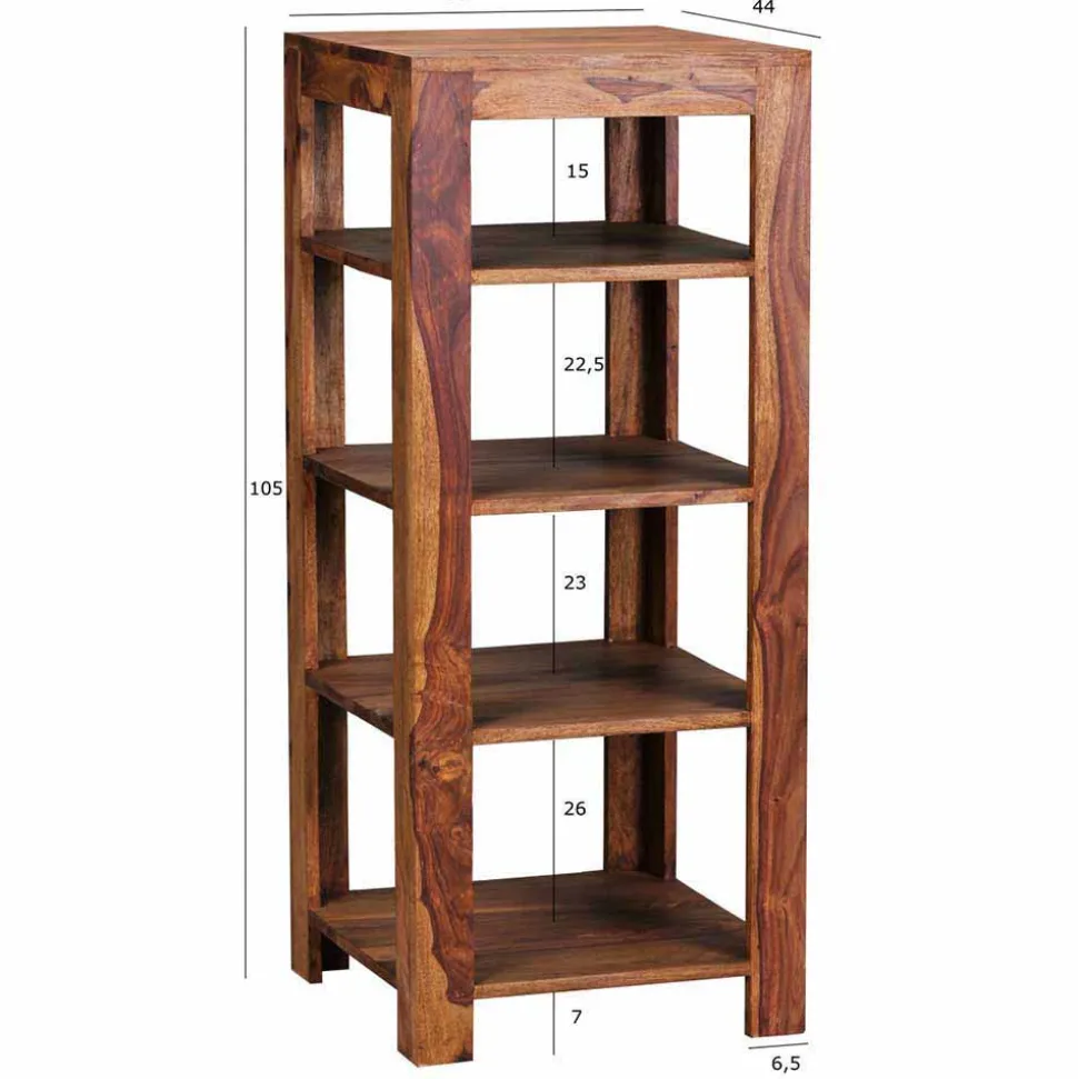 Wert auf stilvolle Einrichtung zu legen, bedeutet nicht nur schöne Möbel zu wählen, sondern auch Möbel mit Substanz und Ausstrahlung. Mit dem Regal „Hoslo“ aus massivem Sheeshamholz gelingt genau das. Dieses kompakte Stauraumwunder in warmen Sheeshamfarben überzeugt nicht nur durch seinen funktionalen Aufbau, sondern vor allem durch die kraftvolle, naturbelassene Optik und das stimmige Design im Landhausstil. Bei einer Größe von 44 cm Breite, 105 cm Höhe und 44 cm Tiefe bietet es reichlich Platz – ob für Bücher, Deko oder alltägliche Gegenstände – und nimmt dennoch wenig Raum ein. Ideal für alle, die es aufgeräumt, natürlich und stilvoll mögen.