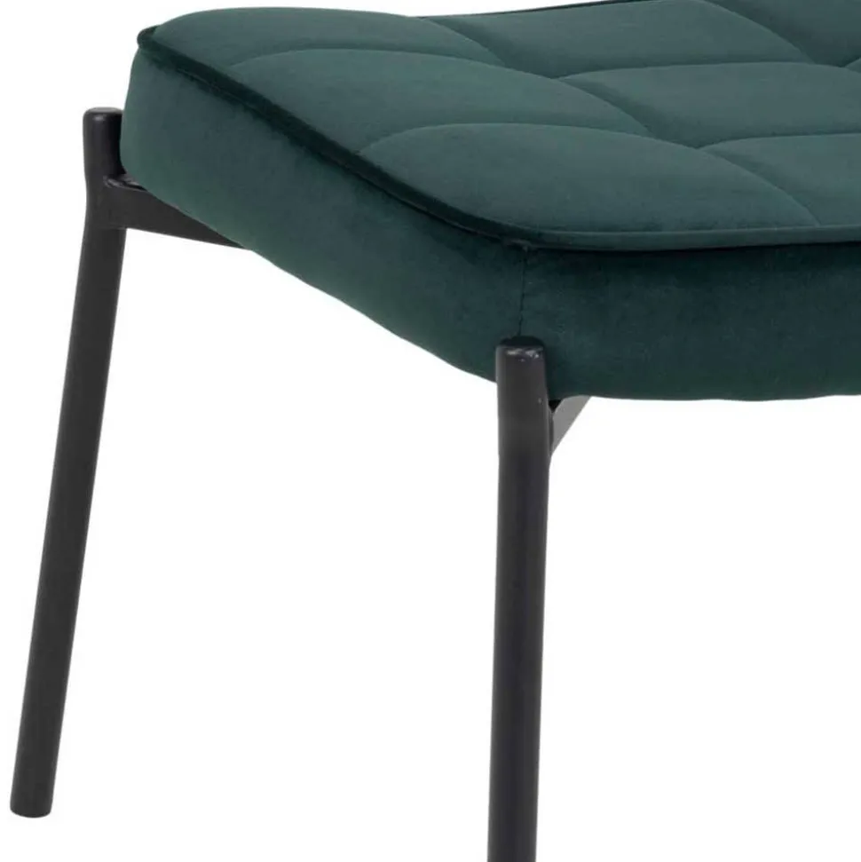 Das schlanke Vierfußgestell aus schwarzem Metall verleiht dem Hocker einen modernen, fast schwebenden Look. Es wirkt luftig-leicht und sorgt gleichzeitig für maximale Stabilität. Dank der integrierten Bodenschoner bleibt Ihr Fußboden stets geschützt – ein echtes Plus für Parkett, Fliesen oder Laminat.
