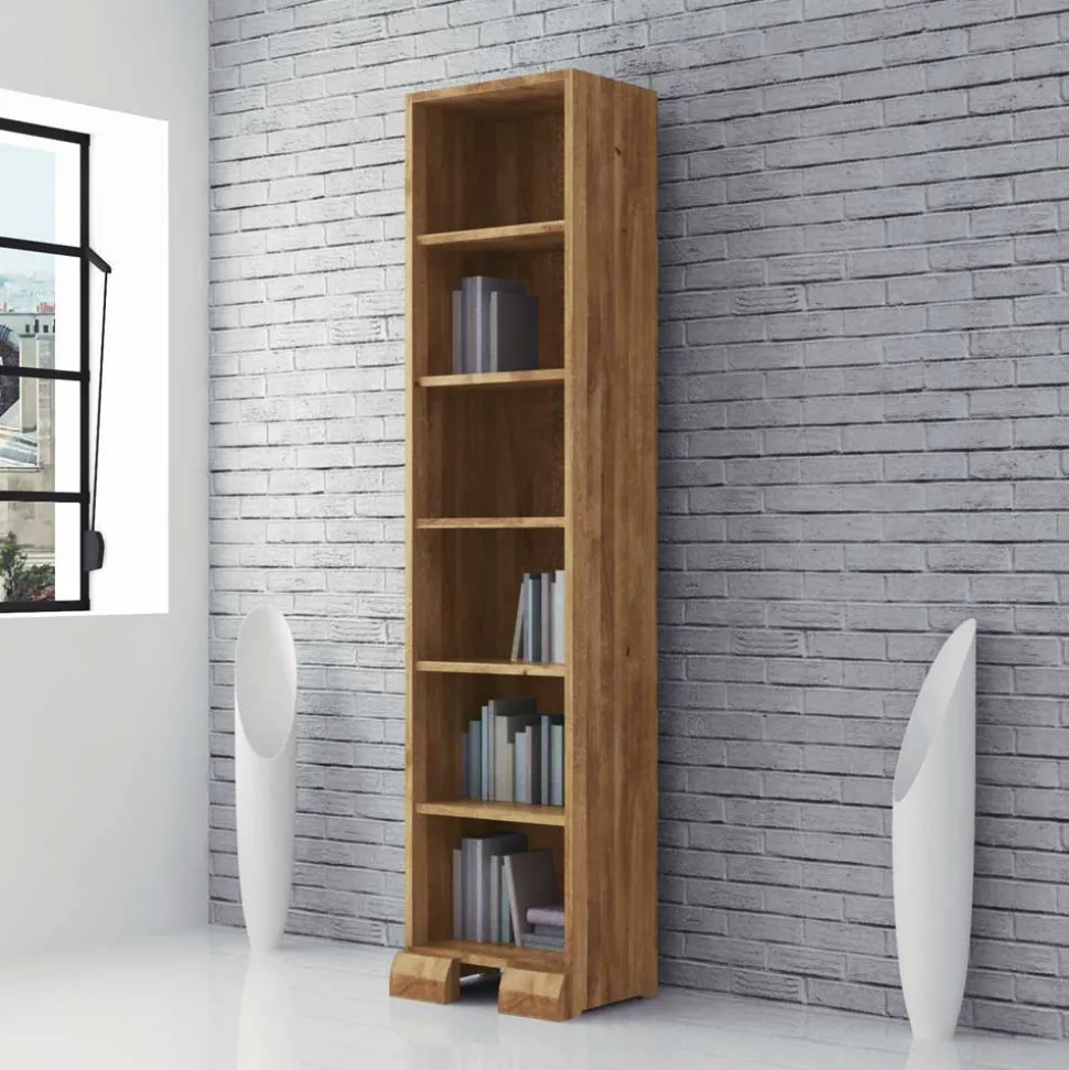 Mit den Maßen 45 cm Breite, 190 cm Höhe und 35 cm Tiefe findet das Regal „Vaskov“ in jedem Raum seinen Platz. Die fünf großzügigen Ablageböden bieten ausreichend Stauraum für Bücher, Dekorationsobjekte und vieles mehr. Die durchgehenden Seitenteile und die stabile Rückwand sorgen für zusätzliche Stabilität und Robustheit. Die Oberplatte hat eine Stärke von 2 cm, was die hochwertige Verarbeitung dieses Möbelstücks unterstreicht.