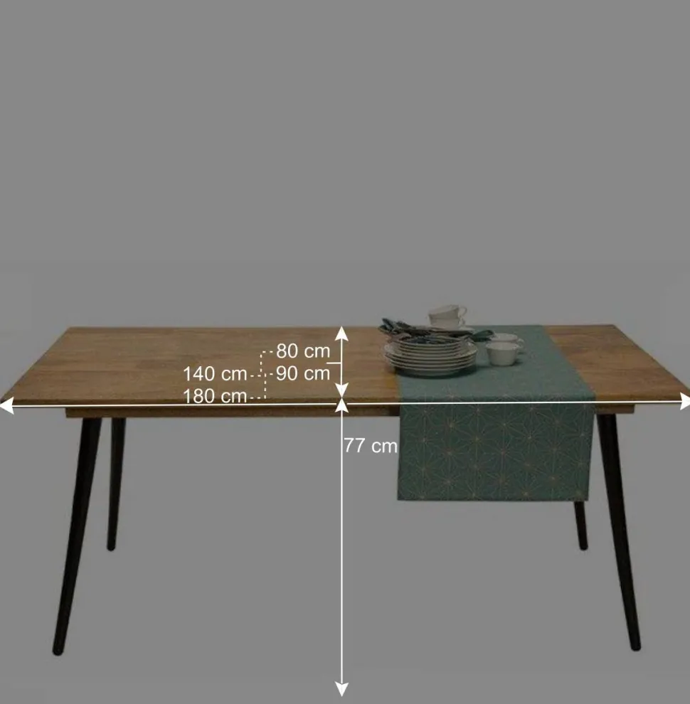Der Tisch misst stolze 77 cm in der Höhe und bietet mit seiner 2,5 cm dicken Tischplatte und einer 5 cm hohen Zarge eine robuste, stabile Oberfläche für all Ihre Bedürfnisse. Ob für tägliche Mahlzeiten oder besondere Anlässe, dieser Tisch ist ein echter Hingucker.
