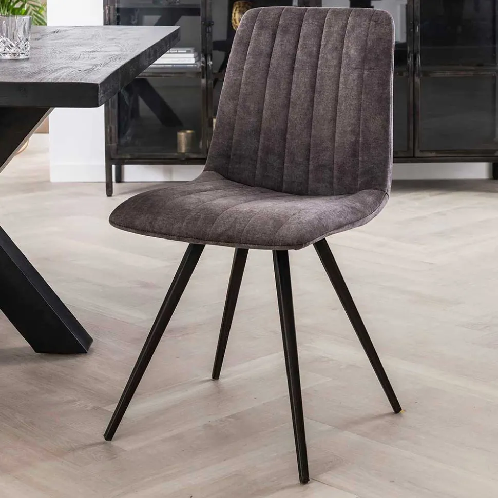 Der graue Samtbezug, gefertigt aus 95 % Polyester und 5 % Elasthan, verleiht dem Stuhl „Valjita“ eine luxuriöse Vintage-Optik. Dieser samtweiche Bezug ist nicht nur eine optische Bereicherung für Ihr Zuhause, sondern auch äußerst pflegeleicht und robust. Die vertikalen Steppnähte auf der Rückenlehne setzen dekorative Akzente und verleihen dem Stuhl eine edle Struktur. Der hochwertige Stoff ist resistent gegen Abnutzung, was ihn ideal für den täglichen Gebrauch macht.