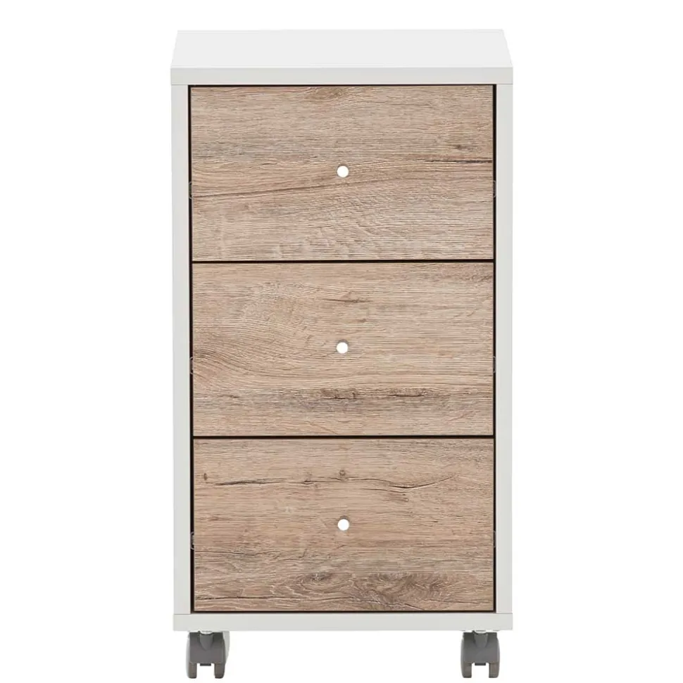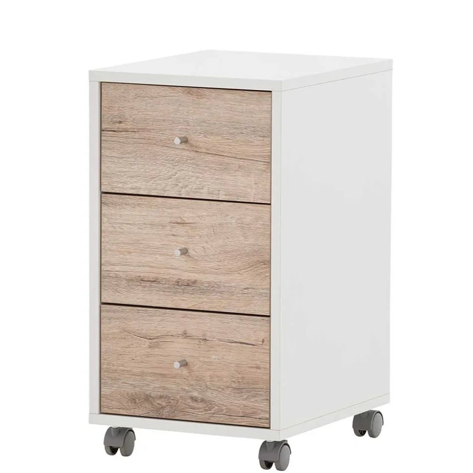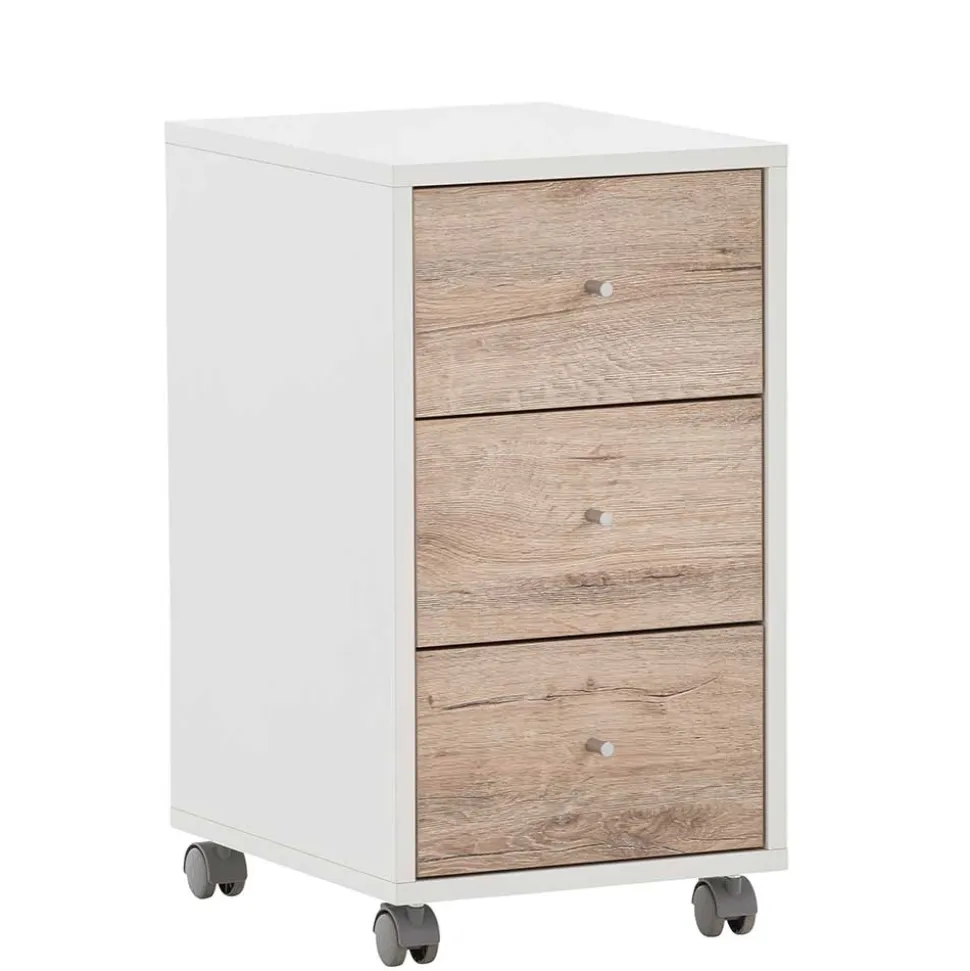 - Praktischer Rollcontainer in Weiß und Wildeichefarben