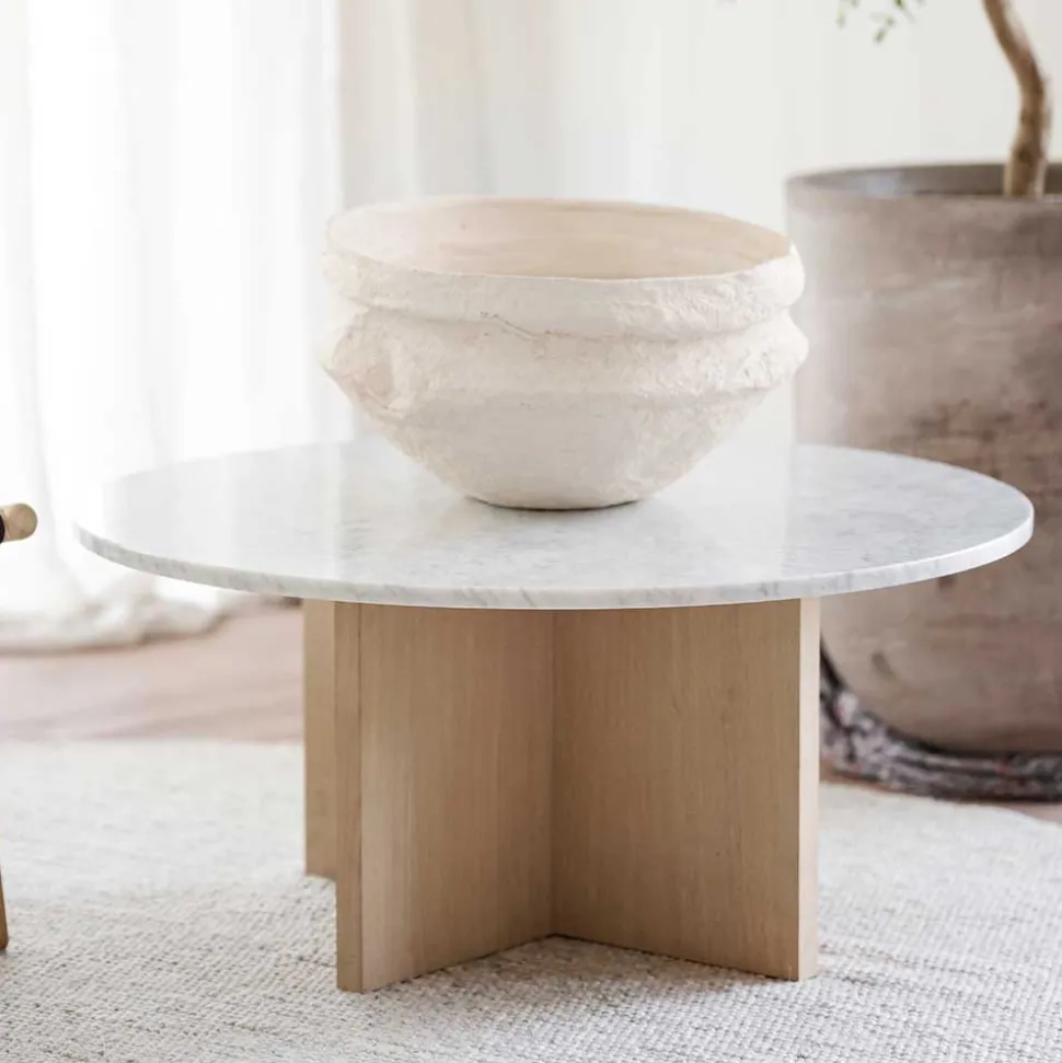 - Klasse Japandi Couchtisch in Weiß und Eiche White Wash