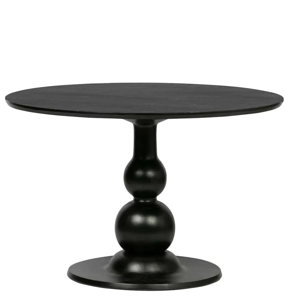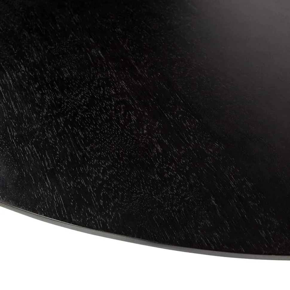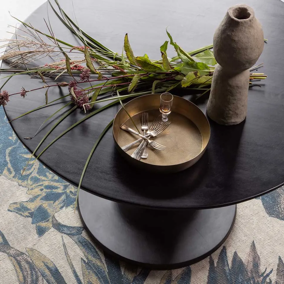 Die pflegeleichte schwarze Lackierung des Rundtischs schützt die Oberfläche vor Kratzern, Feuchtigkeit und Verschmutzungen. Gleichzeitig bleibt die natürliche Struktur des Mangoholzes sichtbar, was den Charme des Tisches noch verstärkt. Ein feuchtes Tuch genügt, um die Tischplatte sauber und gepflegt zu halten – perfekt für einen entspannten Alltag.