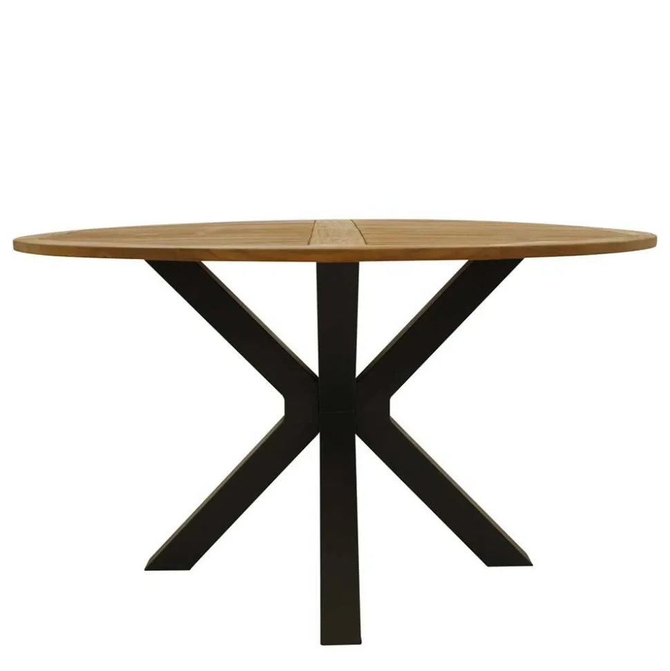 Der Gartentisch „Orleans“ begeistert durch sein modernes Design, das klassische Eleganz mit einem klaren, zeitgenössischen Look kombiniert. Die runde Tischplatte sorgt nicht nur für eine ästhetische Form, sondern auch für eine besonders angenehme Gesprächsatmosphäre, bei der alle Sitzenden in direktem Kontakt zueinander sind. Diese harmonische Verbindung von Form und Funktion macht den Tisch zu einem idealen Möbelstück für alle, die ihren Außenbereich mit einem stilvollen und zugleich funktionalen Element bereichern möchten. Das Design wird durch die Kombination von massiven Naturmaterialien und modernem Stahlgestell zu einem echten Highlight, das in keinem Garten oder auf keiner Terrasse fehlen sollte.