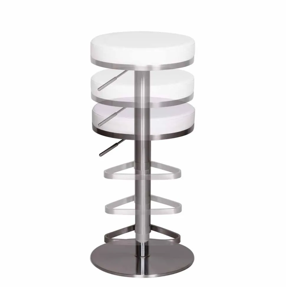 Die Kombination aus einem verchromten Edelstahlgestell und einer gepolsterten Sitzfläche mit weißem Kunstlederbezug (100% Polyurethan) steht für exzellente Verarbeitung und edles Design. Kunstleder bietet zahlreiche Vorteile: Es ist nicht nur besonders pflegeleicht, sondern auch langlebig und robust gegenüber Abnutzung. Außerdem überzeugt es durch seine unempfindliche Oberfläche, die selbst bei intensiver Nutzung lange wie neu aussieht. Ein weiterer Vorteil von Kunstleder ist, dass es einfach zu reinigen ist – ein feuchtes Tuch genügt, um Flecken oder Verschmutzungen zu entfernen.