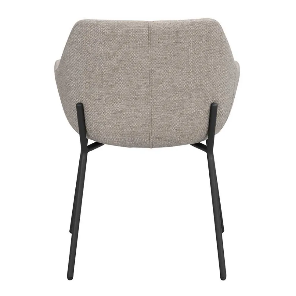 Die Stühle bieten dank ihrer weichen Polsterung in Sitz und Rücken höchsten Komfort, sodass auch längere Mahlzeiten zu einem Vergnügen werden. Die schmalen, leicht nach außen geneigten Armlehnen verleihen den Stühlen nicht nur eine elegante Note, sondern bieten auch zusätzlichen Sitzkomfort. Mit einer Sitzhöhe von ca. 47 cm, einer Sitztiefe von 44 cm und einer Sitzbreite von 42 cm sind die Stühle perfekt proportioniert, um eine bequeme Sitzposition zu gewährleisten. Das Vierfußgestell aus schwarz lackiertem Metall sorgt für Stabilität und ist mit Bodenschonern ausgestattet, um Ihre Fußböden zu schützen.