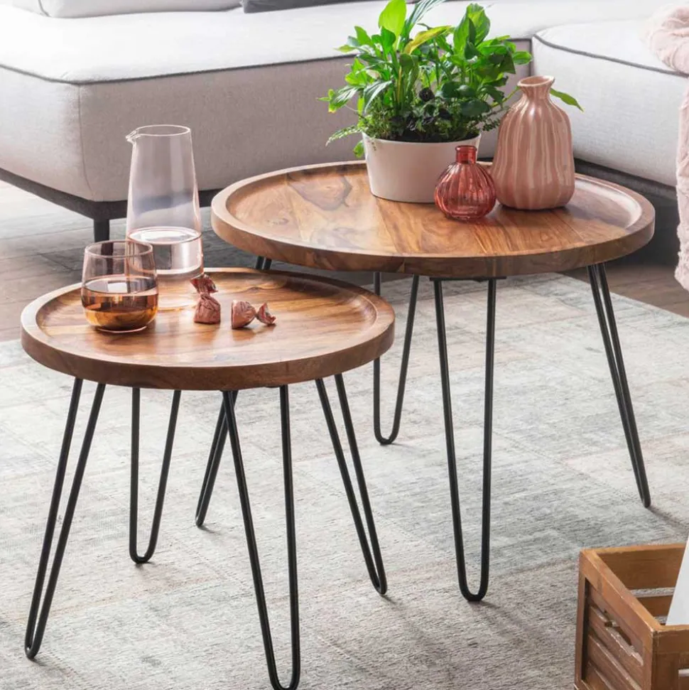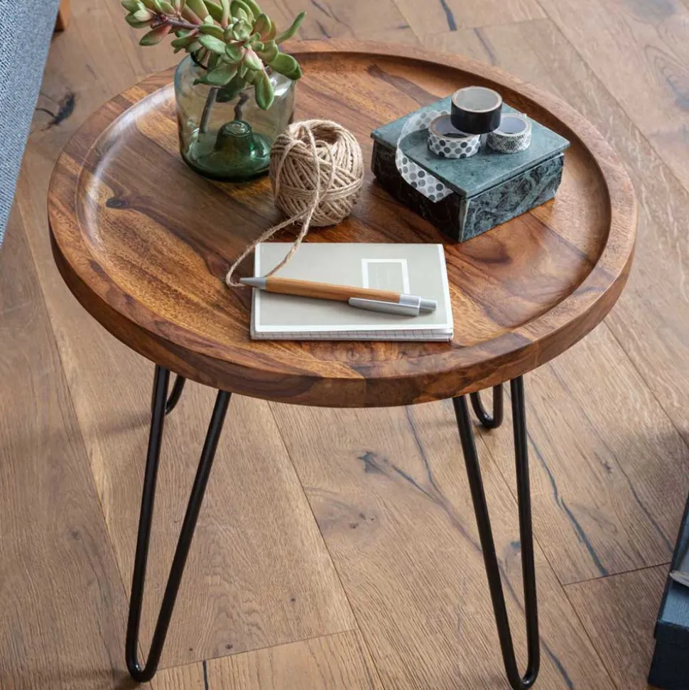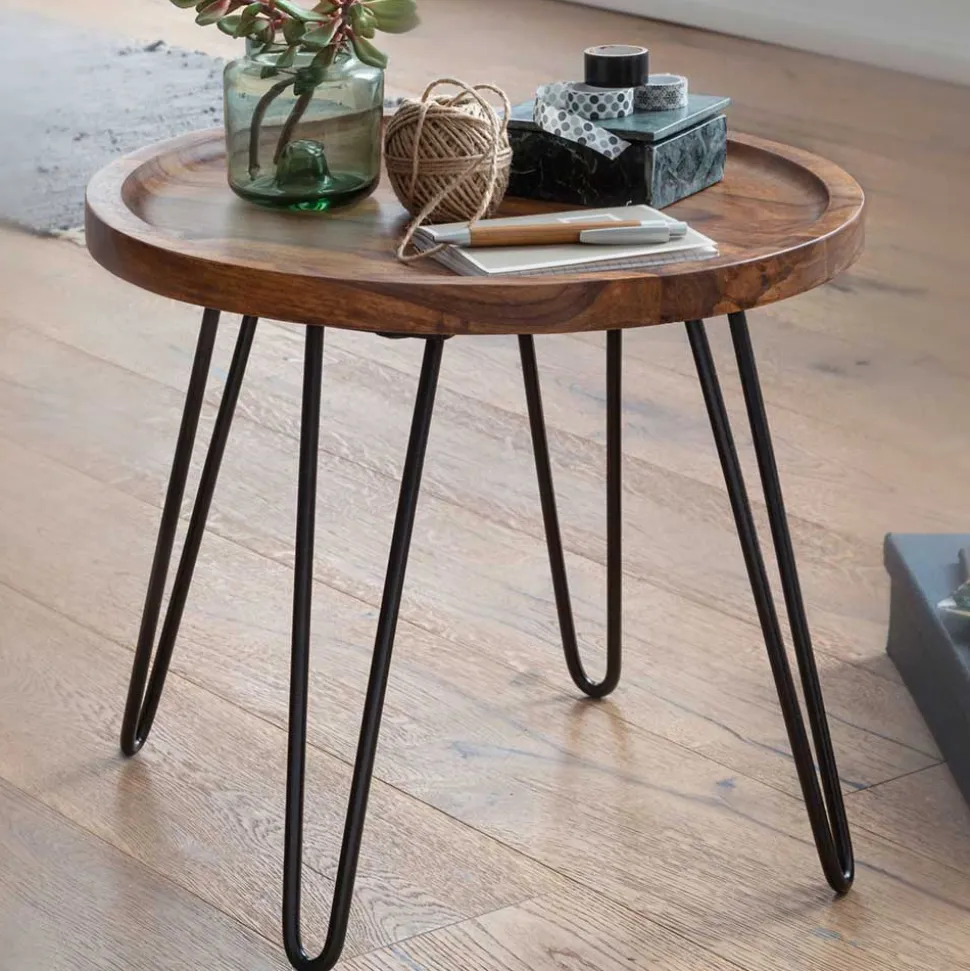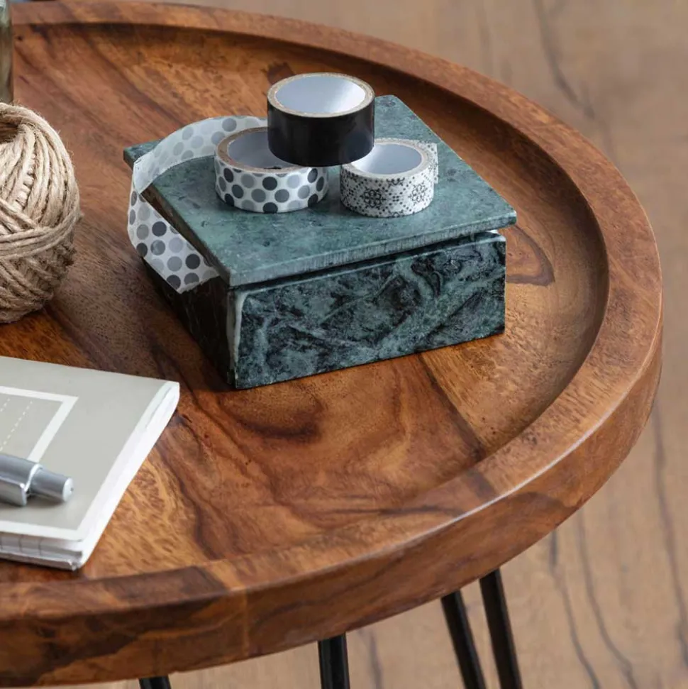 - Natürlicher Couchtisch in Sheeshamfarben und Schwarz