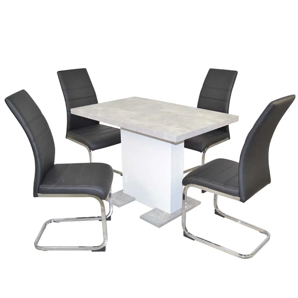 - Solide Essgruppe in Schwarz, Chrom, Weiß und Beton Optik